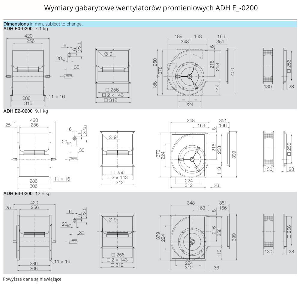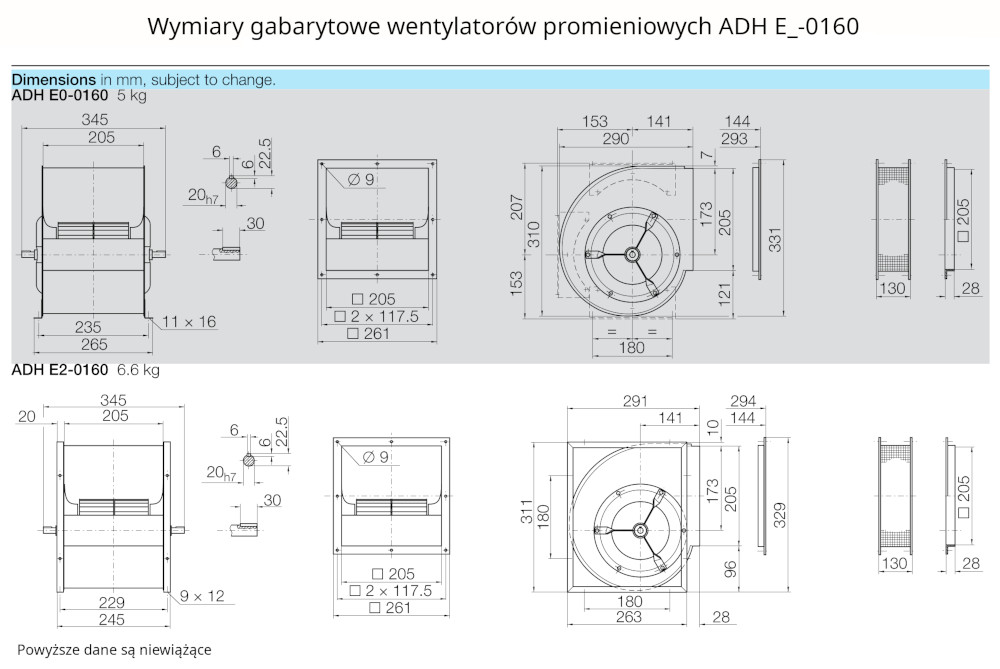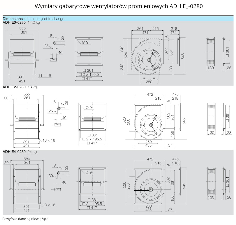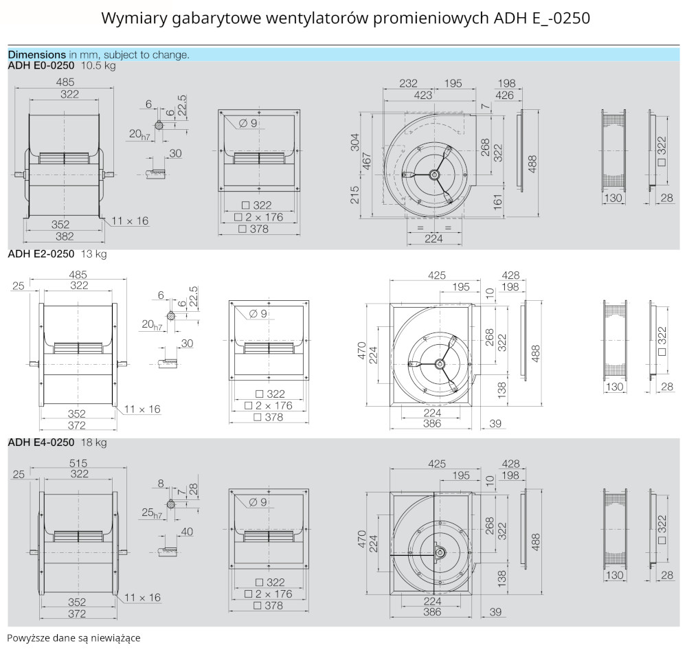 – wykonanie podstawowe wentylatora, lekka konstrukcja – ADH E0 / ADH L