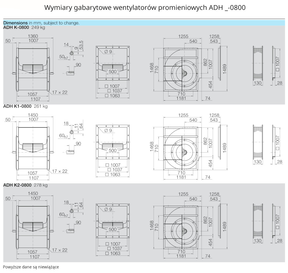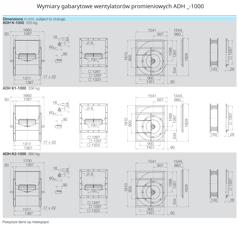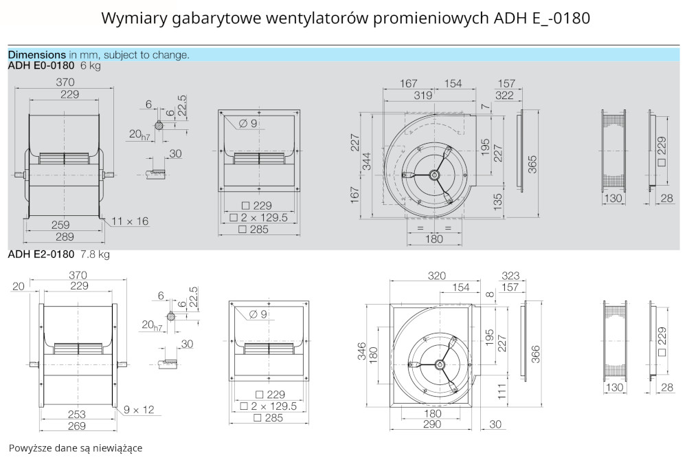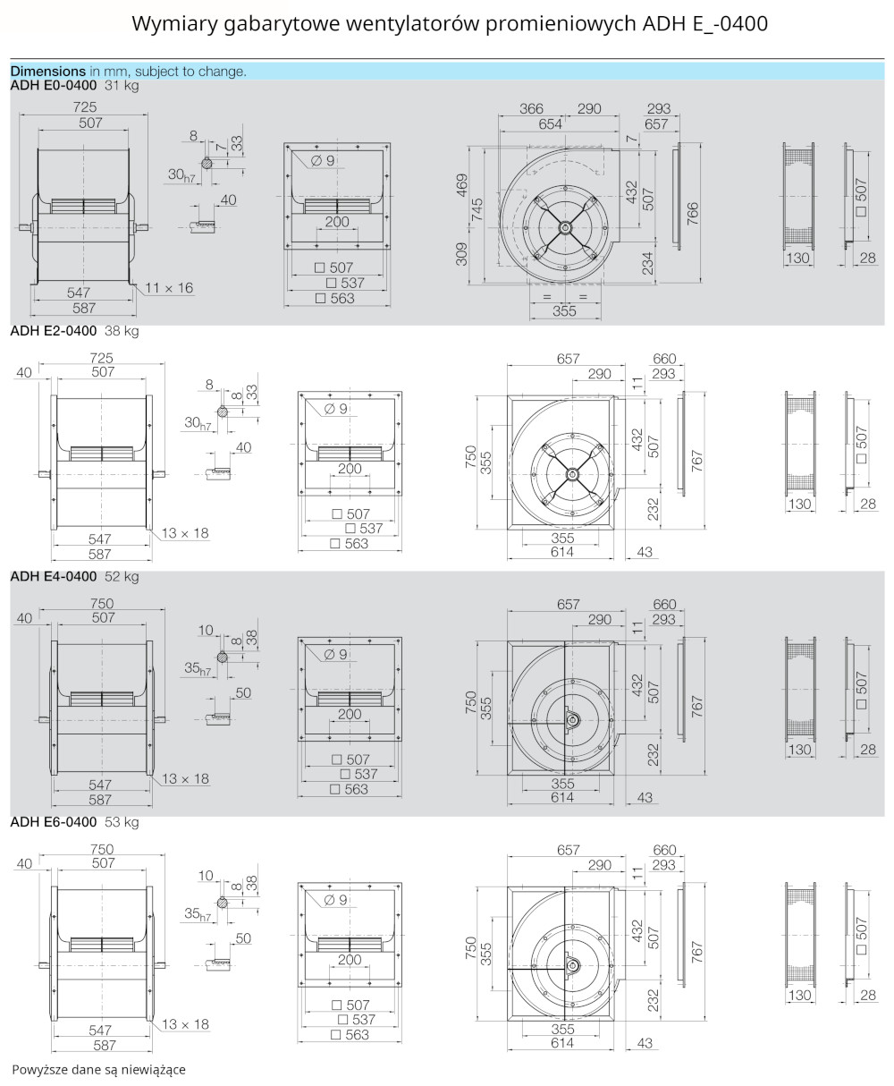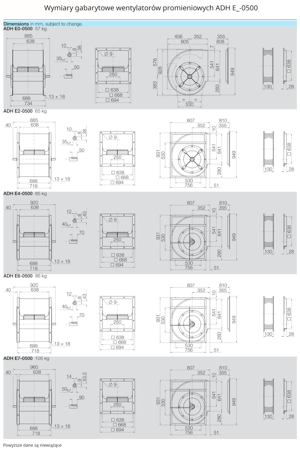 – wykonanie podwójne, tzw. bliźniak, dwa wentylatory na jednym wale napędowym. Dostępna każda z poprzednich wersji. Przykładowo ADH G2E0; ADH G2E2; ADH G2R – szczegóły w karcie katalogowej