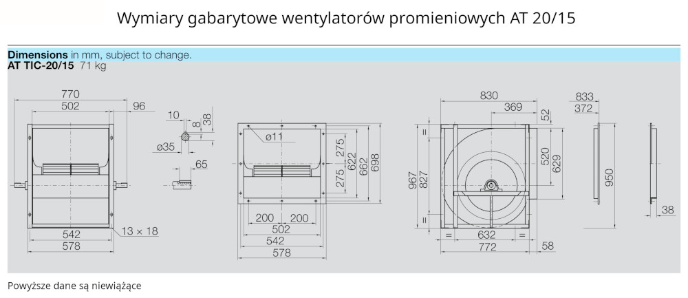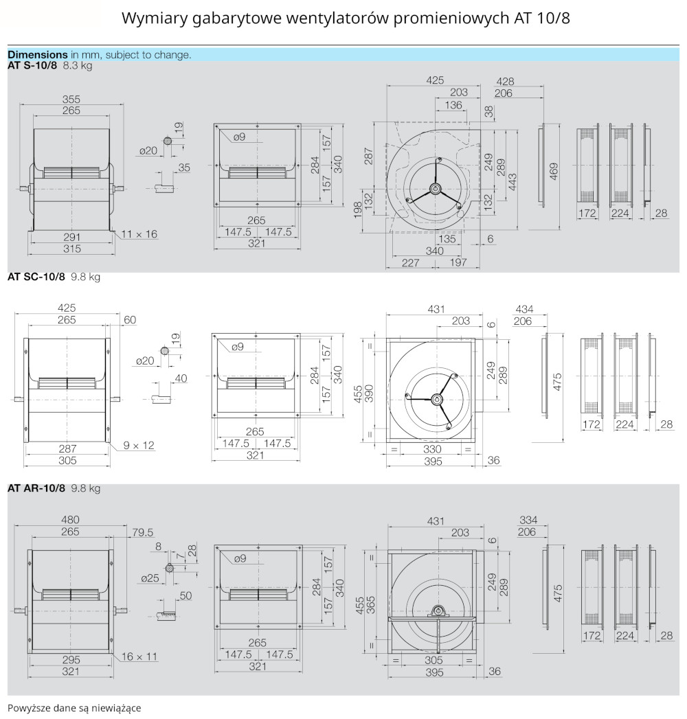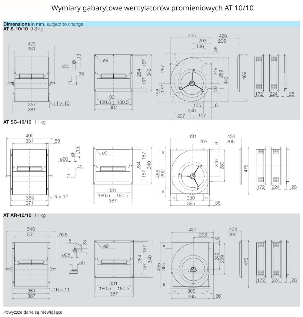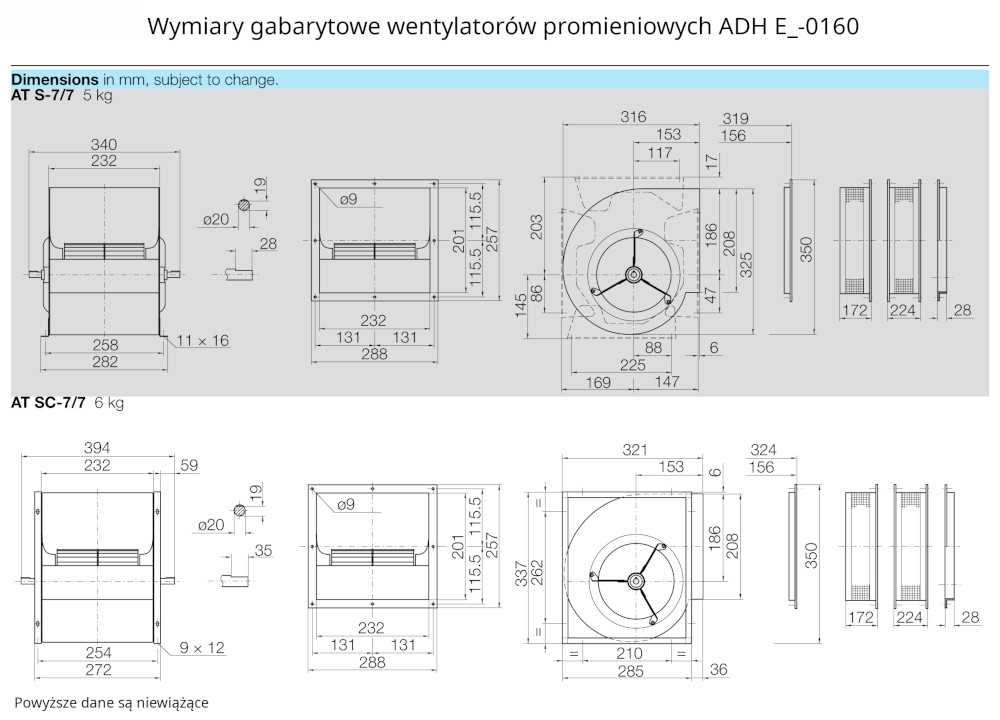 – wykonanie podstawowe wentylatora, lekka konstrukcja – AT S