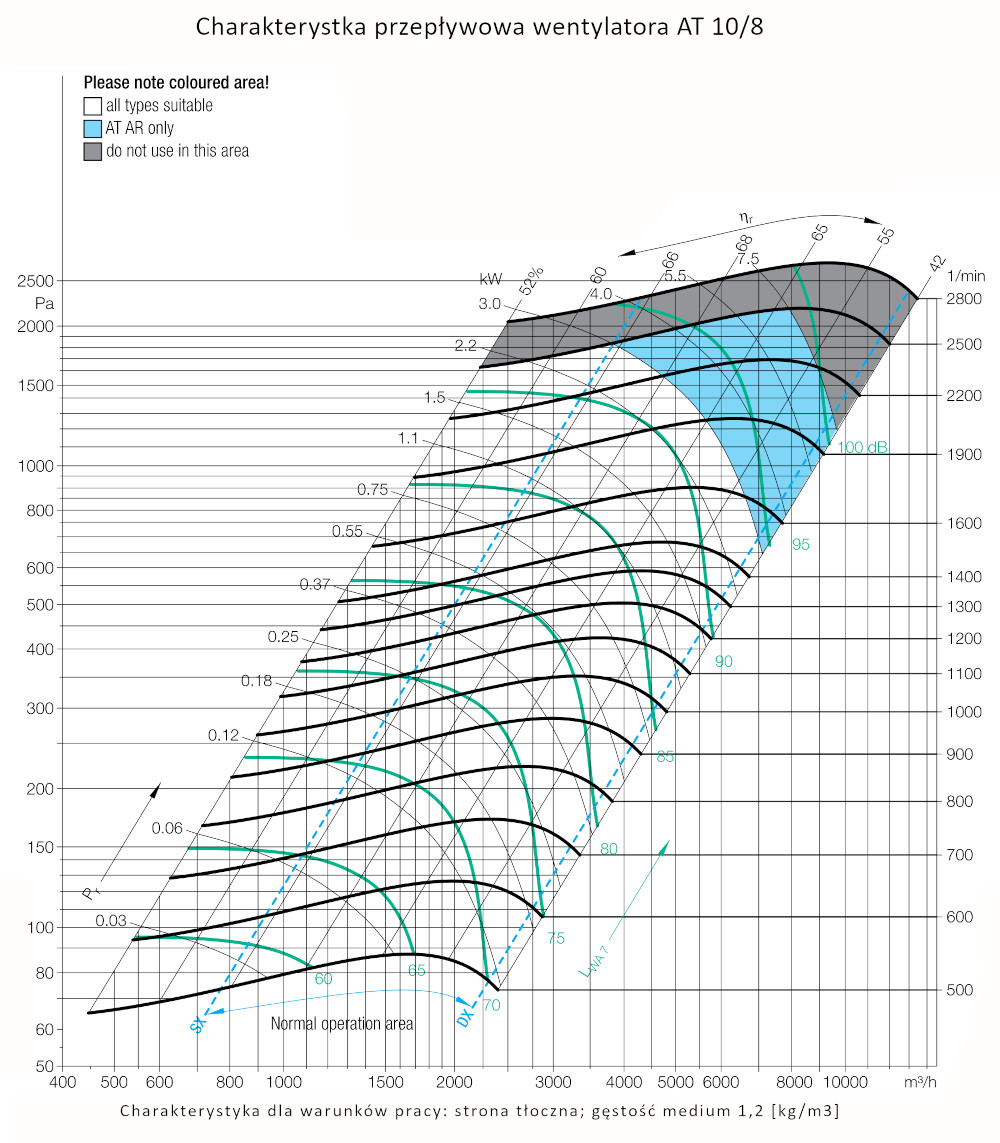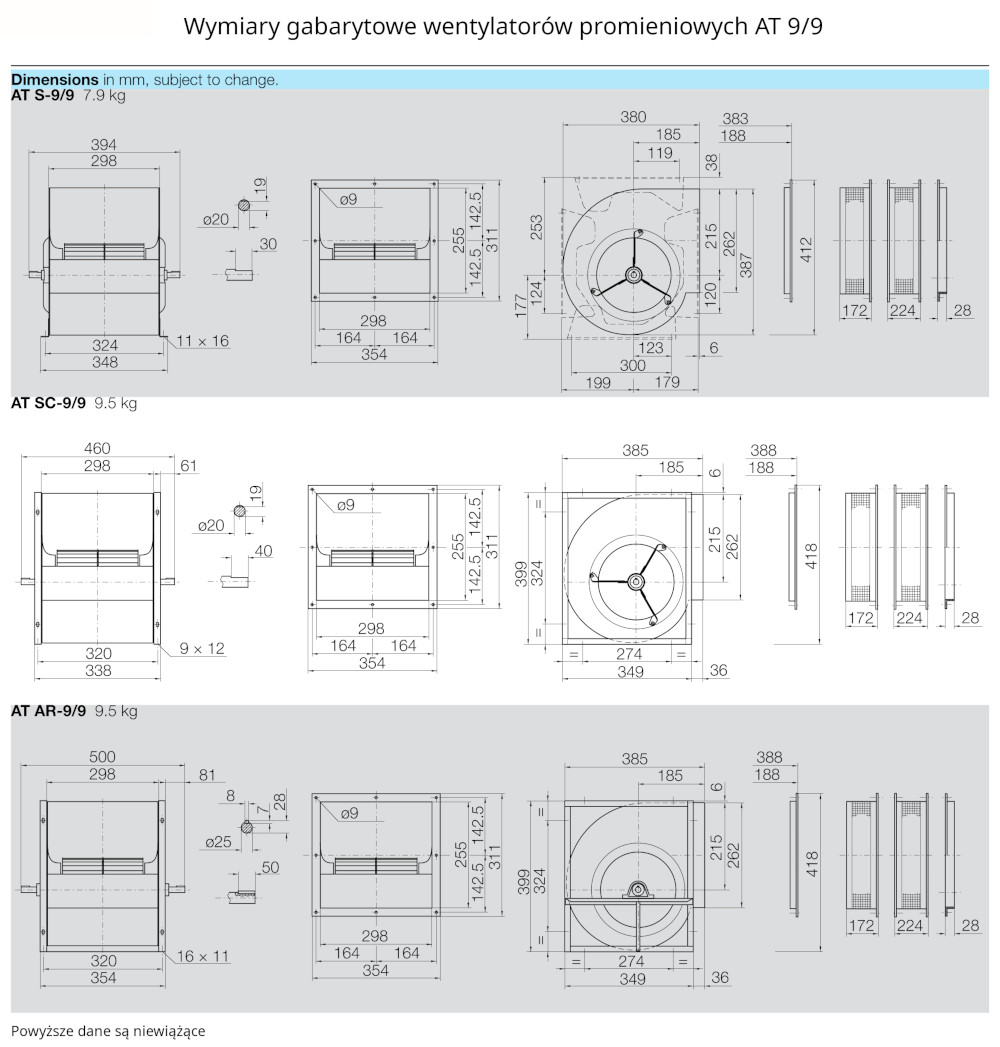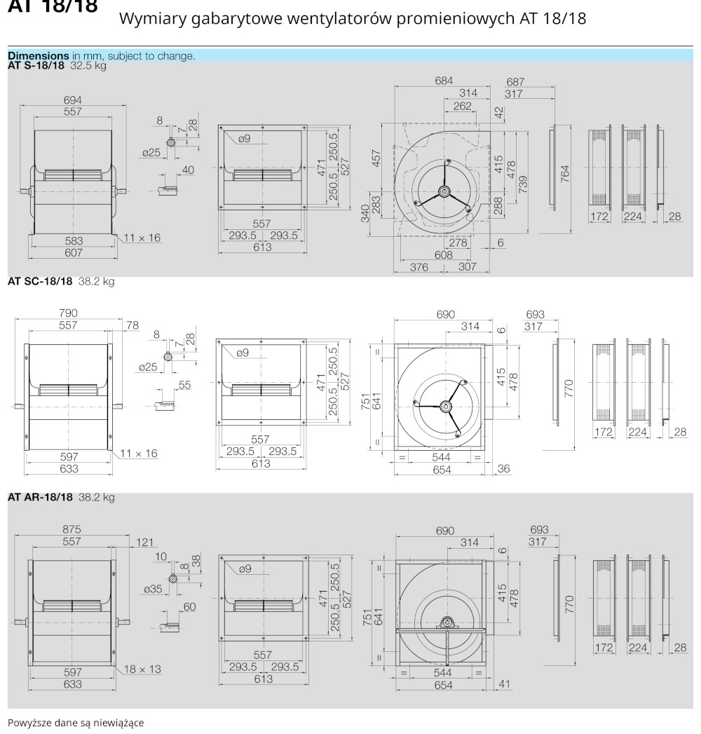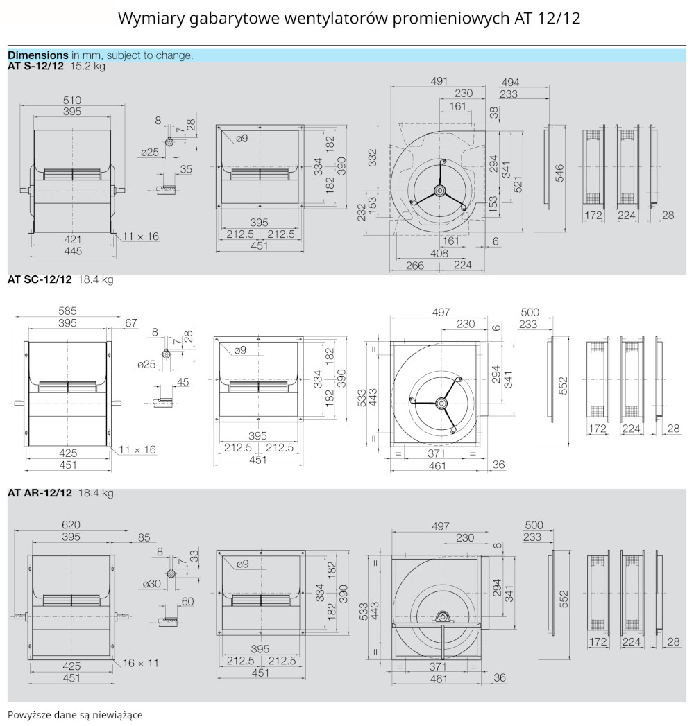Dwustronnie ssące wentylatory promieniowe serii AT przeznaczone są do przetłaczania czystego powietrza. Stosowane przede wszystkim w urządzeniach wentylacyjnych. Cechą charakterystyczną wentylatorów AT jest zwarta budowa, wysoka efektywność oraz niski poziom hałasu. Wirnik wentylatora z łopatkami zagiętymi do przodu, osadzony na obustronnie łożyskowanym wale. Maksymalna temperatura przetłaczanego medium +40°C (max +100°C dla wybranych wersji).