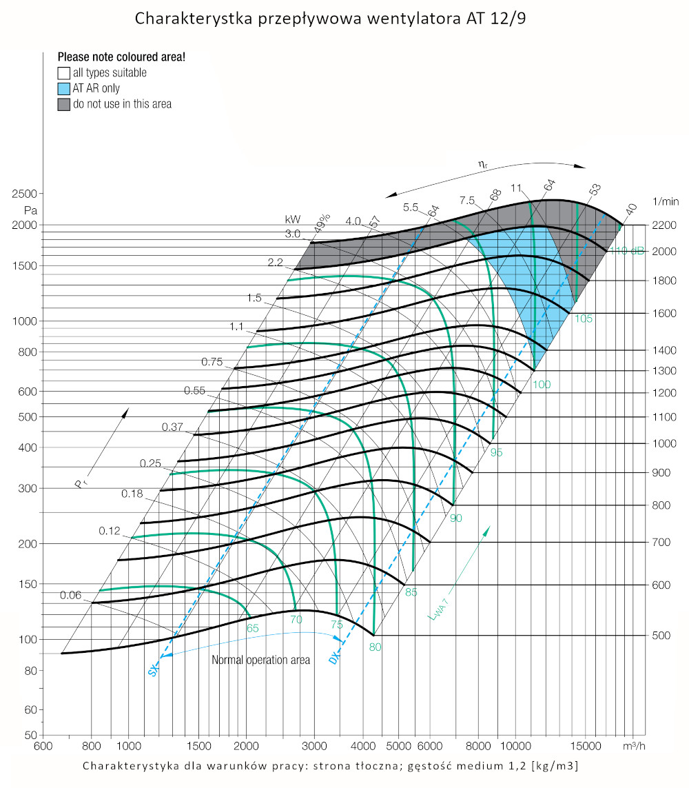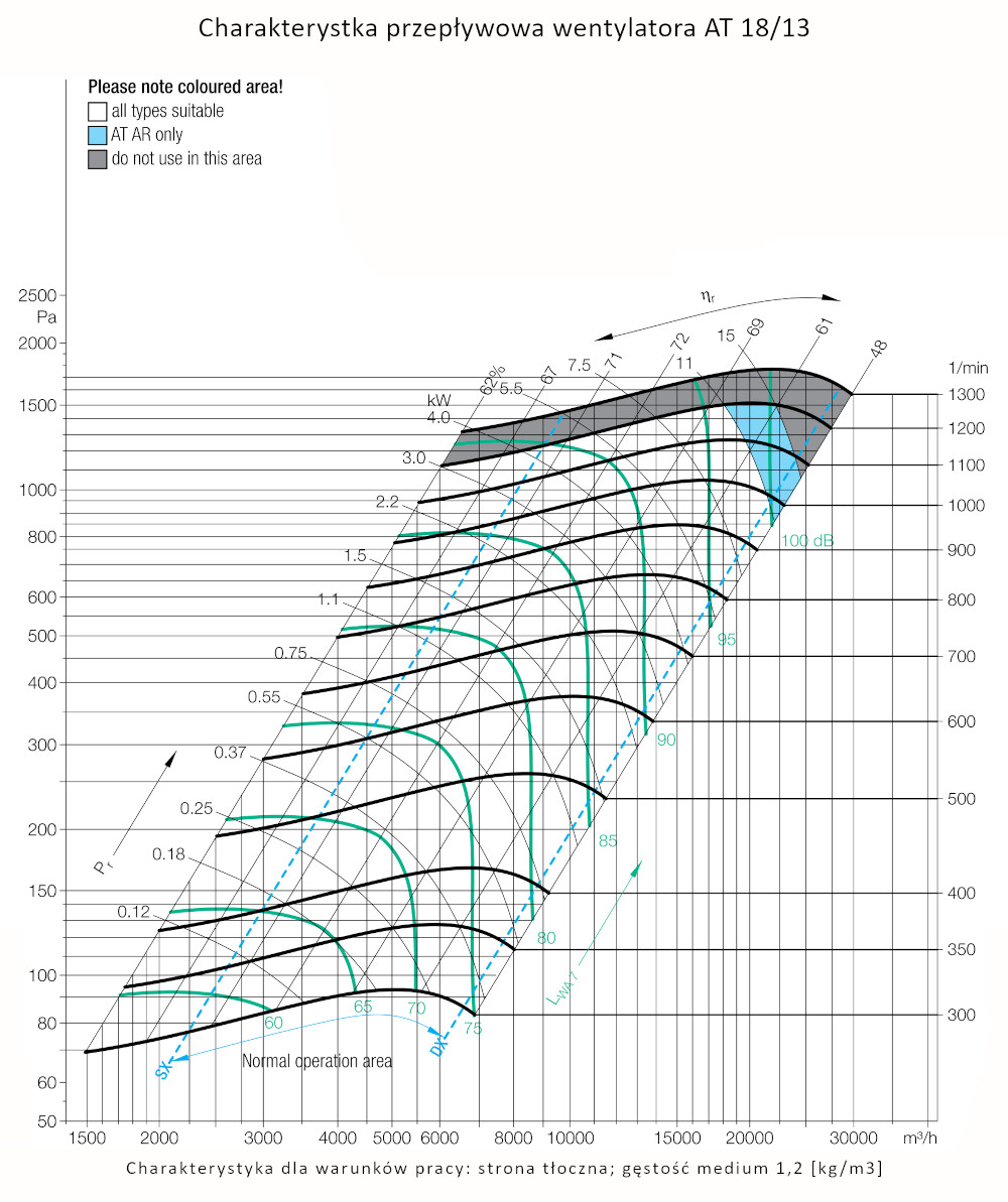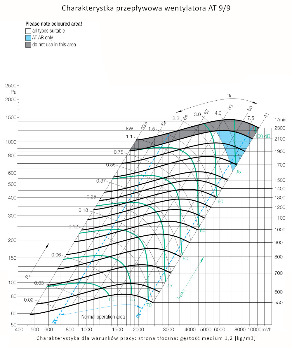 Dwustronnie ssące wentylatory promieniowe serii AT przeznaczone są do przetłaczania czystego powietrza. Stosowane przede wszystkim w urządzeniach wentylacyjnych. Cechą charakterystyczną wentylatorów AT jest zwarta budowa, wysoka efektywność oraz niski poziom hałasu. Wirnik wentylatora z łopatkami zagiętymi do przodu, osadzony na obustronnie łożyskowanym wale. Maksymalna temperatura przetłaczanego medium +40°C (max +100°C dla wybranych wersji).