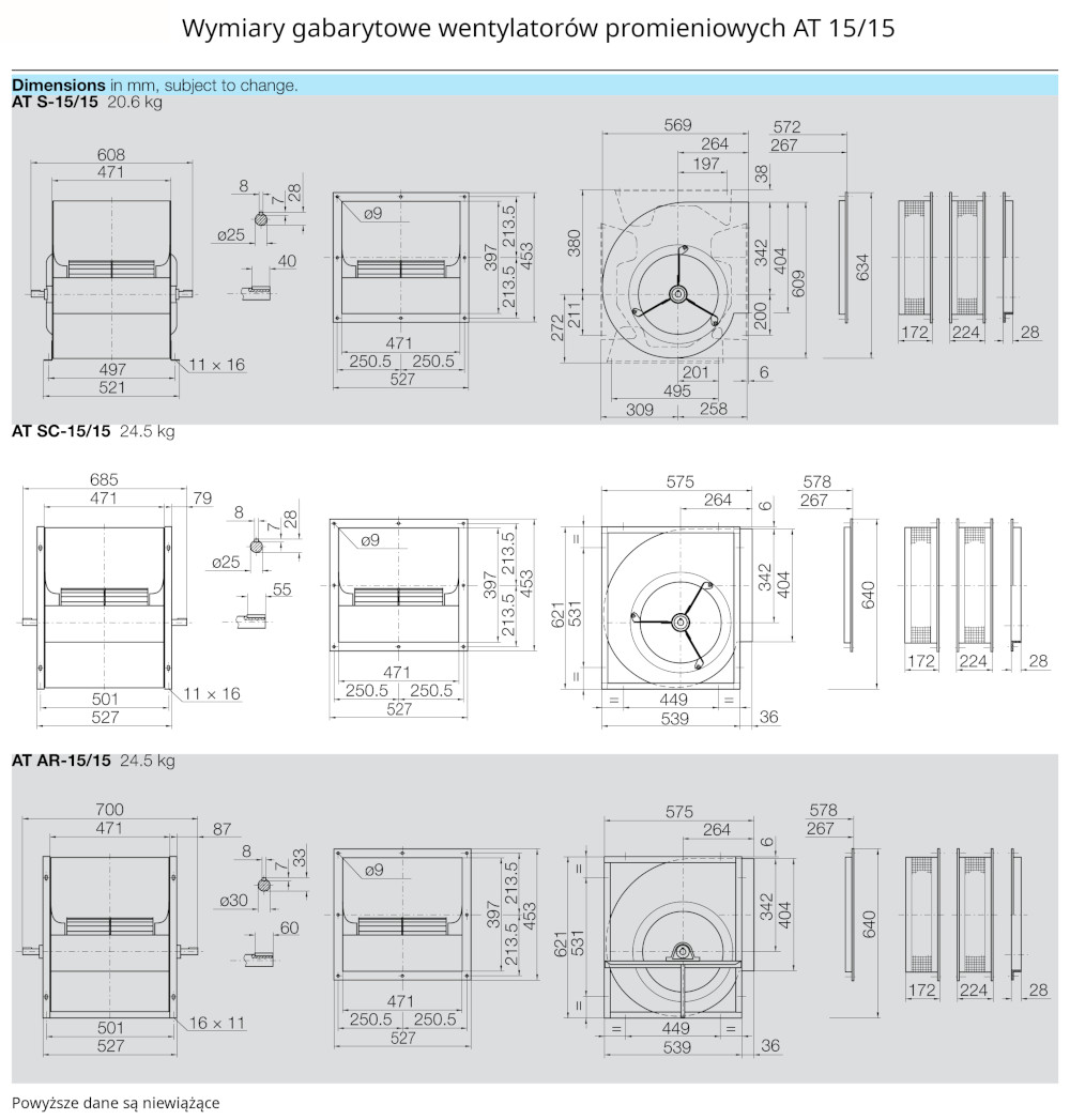 – wykonanie podwójne, tzw. bliźniak, dwa wentylatory na jednym wale napędowym. Dostępna każda z poprzednich wersji. Przykładowo AT G2L; AT SC2; AT G2C – szczegóły w karcie katalogowej