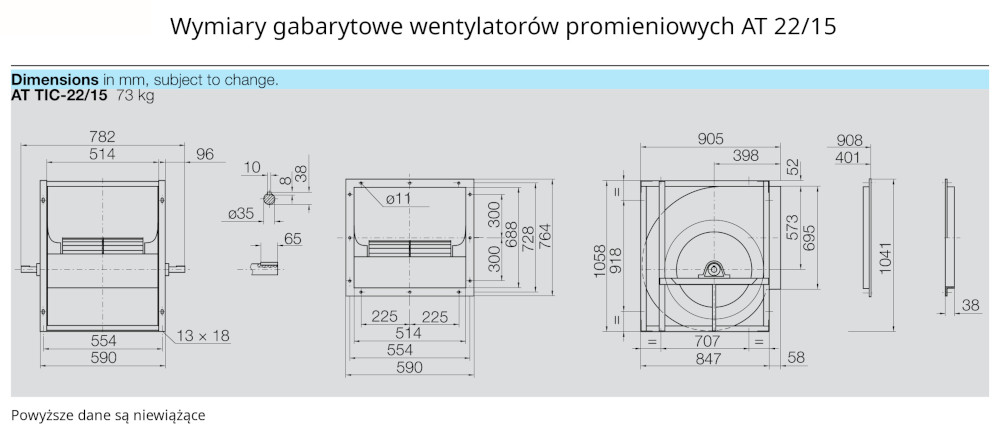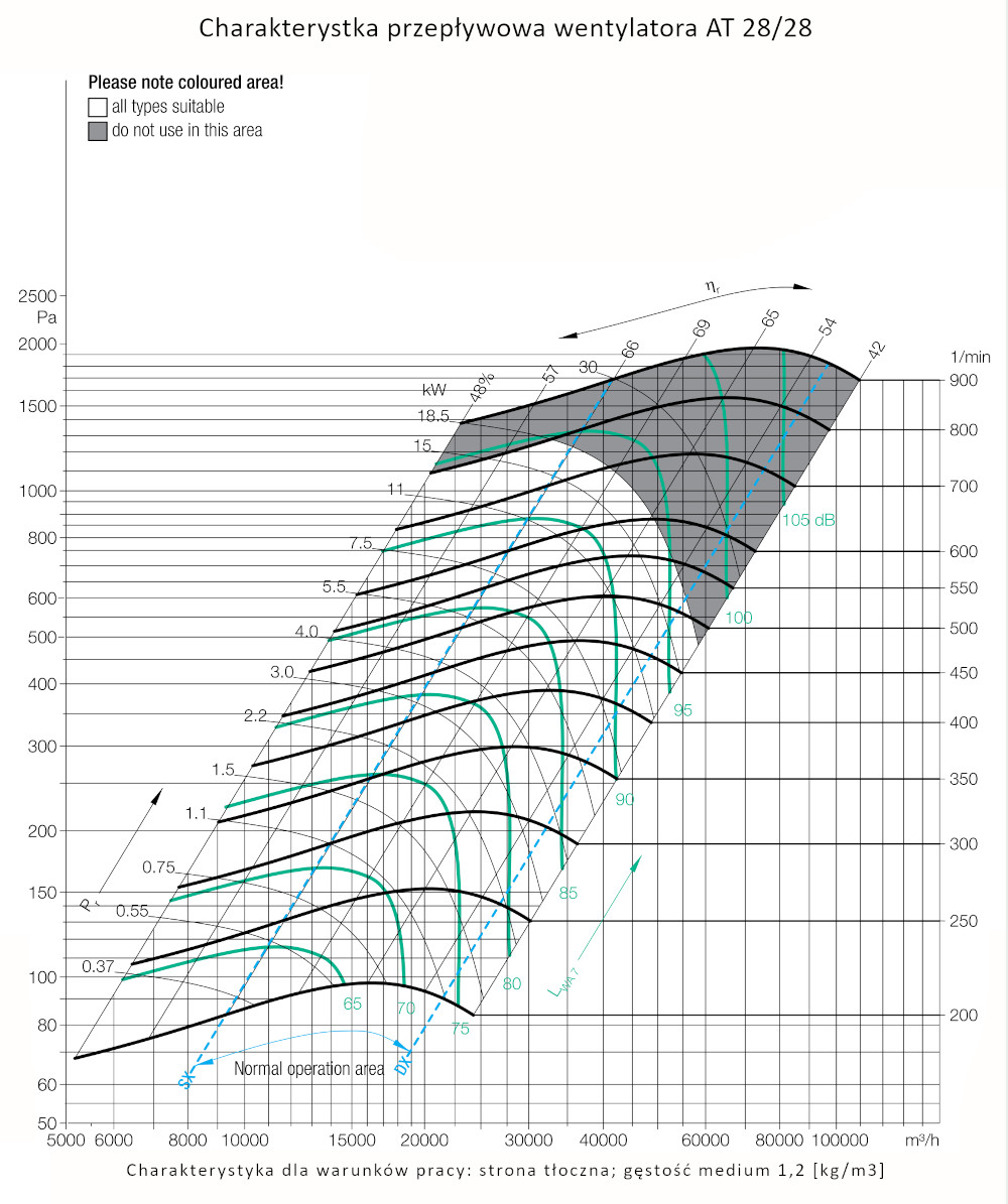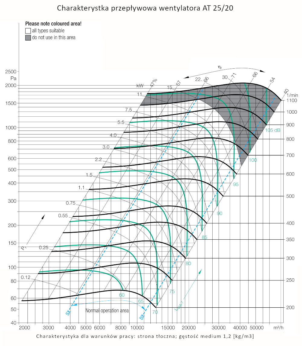 – wirnik dwustronnie ssący z łopatkami zagiętymi do przodu, wyważony statycznie oraz dynamicznie
