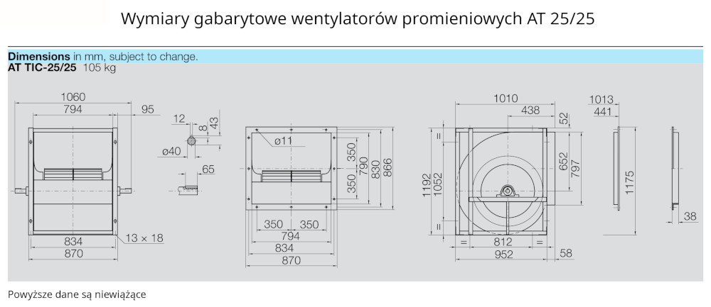 – wykonanie wzmocnione +, wyposażone w ramę nośną na której osadzono wzmocnione łożyska w przemysłowych obudowach, średnica wału powiększona, wersja przeznaczona do najcięższych warunków pracy – AT TIC