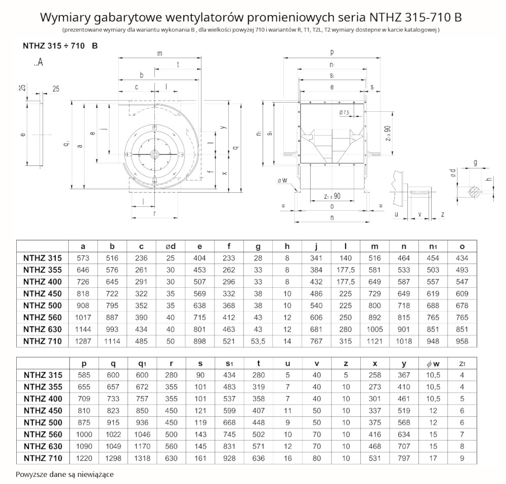 Dwustronnie ssące wentylatory promieniowe serii NTHZ przeznaczone są do przetłaczania czystego oraz lekko zanieczyszczonego powietrza. Stosowane głównie w urządzenia wentylacyjnych, grzewczych oraz klimatyzacyjnych. Cechą charakterystyczną wentylatorów NTHZ jest zwarta budowa, wysoka efektywność oraz niski poziom hałasu. Wirnik wentylatora z łopatkami zagiętymi do tyłu, osadzony na obustronnie łożyskowanym wale. Maksymalna temperatura przetłaczanego medium +60°C.