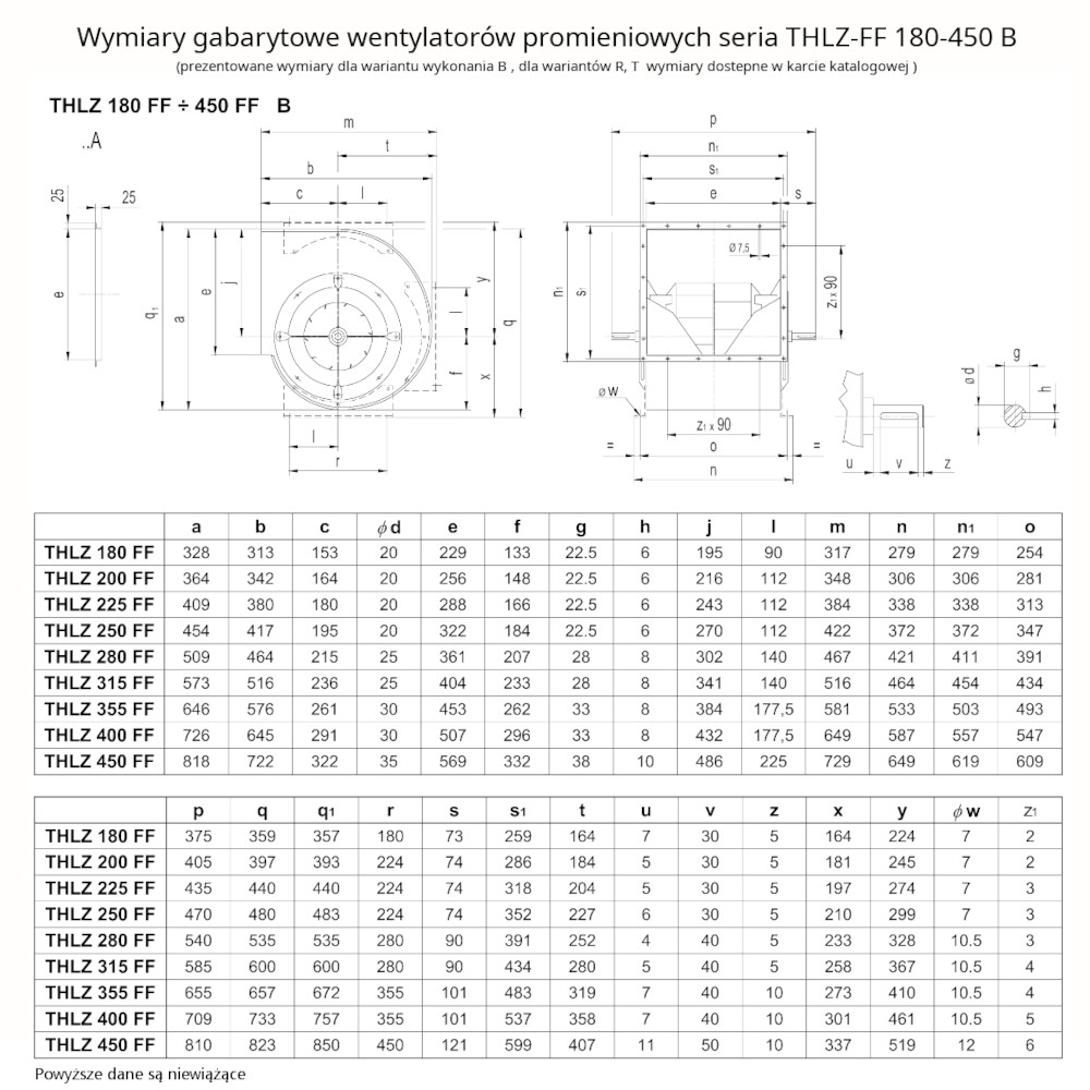 Dwustronnie ssące wentylatory promieniowe serii THLZ FF przeznaczone są do przetłaczania czystego oraz lekko zanieczyszczonego powietrza. Stosowane głównie w urządzenia wentylacyjnych, grzewczych oraz klimatyzacyjnych. Cechą charakterystyczną wentylatorów THLZ FF jest zwarta budowa, wysoka efektywność, niski poziom hałasu oraz niższe zapotrzebowanie na moc w wyniku zastosowania lekkiego wirnika wentylatora wytworzonego z tworzywa sztucznego. Wirnik wentylatora z łopatkami zagiętymi do tyłu, osadzony na obustronnie łożyskowanym wale. Maksymalna temperatura przetłaczanego medium +80°C.