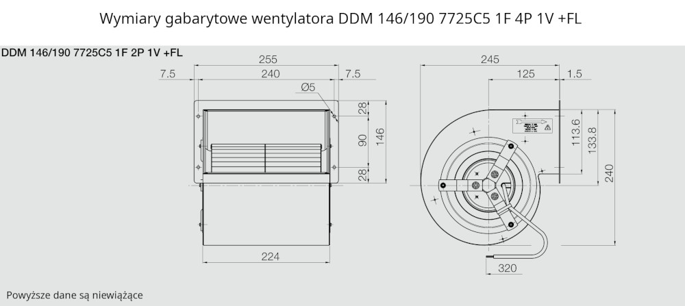 – wirnik promieniowy z łopatami zagiętymi do przodu, wyważony statycznie oraz dynamicznie