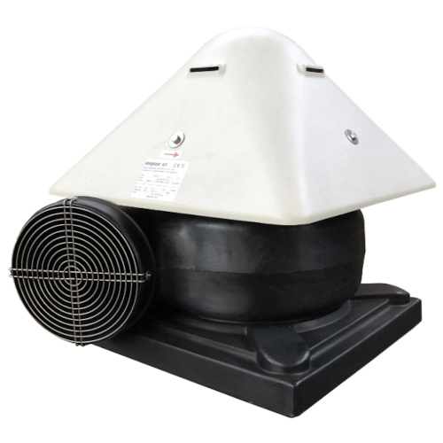 P-CO ATEX chemoodporne przeciwwybuchowe wentylatory dachowe z wirnikami zagiętymi do tyłu. Obudowa wentylatora wykonana z antystatycznego polietylenu (PE-el), wirnik wentylatora wykonany z polipropylenu (PP). Wentylatory serii P-CO ATEX przystosowane do pracy w strefie zagrożenia wybuchem 1, 2, 21, 22 oraz przetłaczania mieszaniny gazów o temperaturze nieprzekraczającej +60°C.