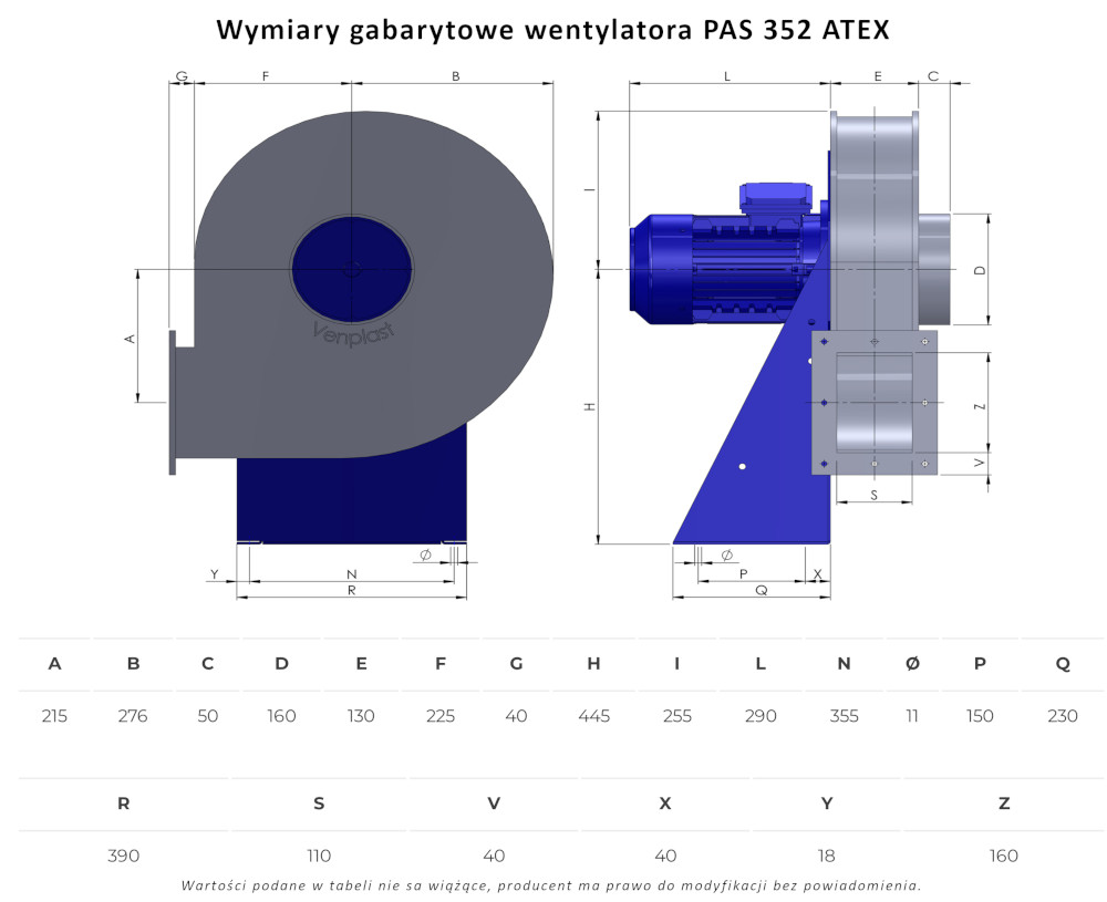 PAS 352 ATEX wentylator chemoodporny przeciwwybuchowy promieniowy