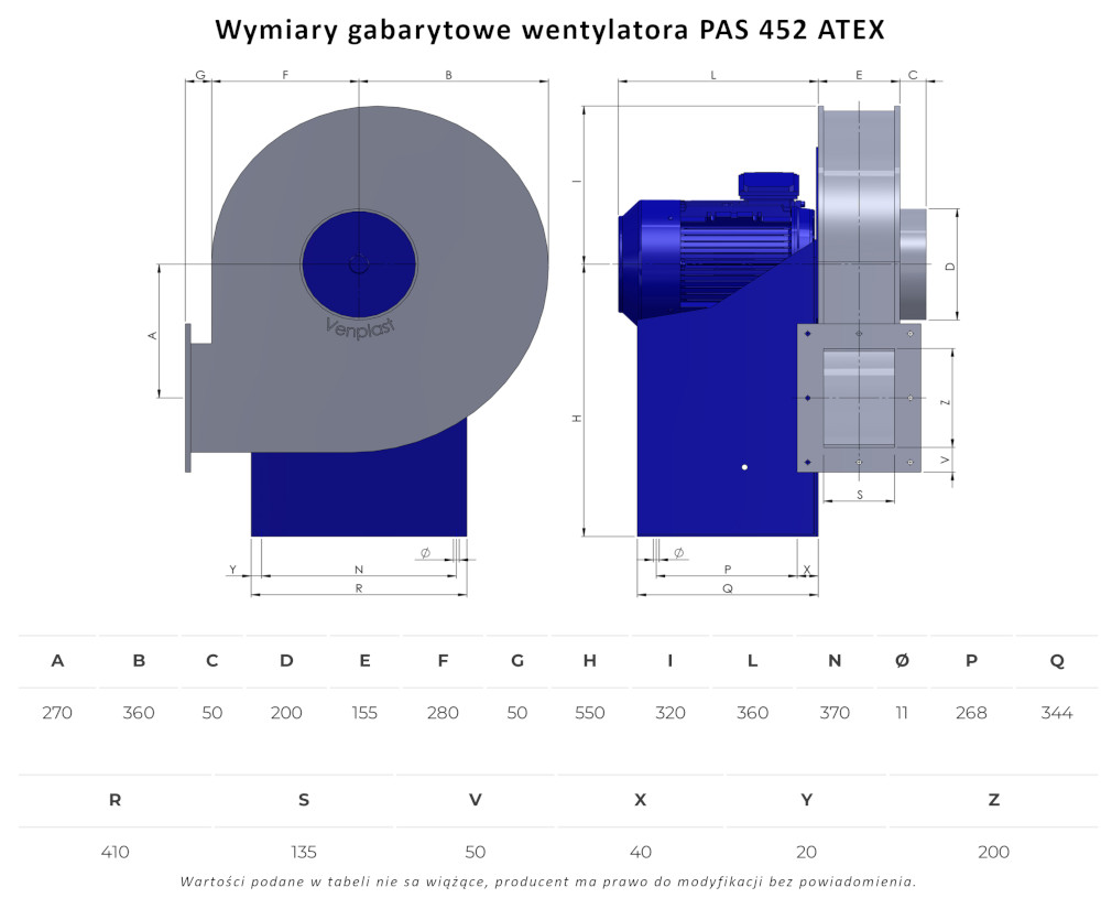 PAS 452 ATEX wentylator chemoodporny przeciwwybuchowy promieniowy