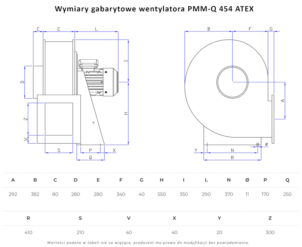 PMM-Q 454 ATEX wentylator chemoodporny przeciwwybuchowy promieniowy