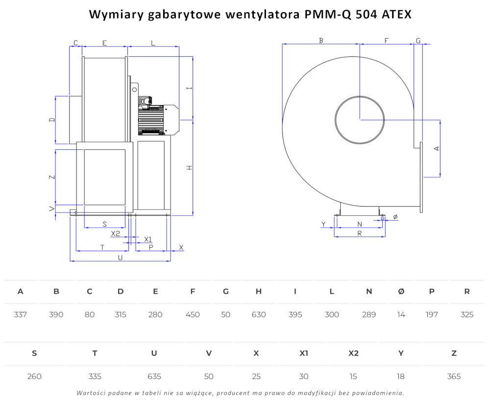 PMM-Q 504 ATEX wentylator chemoodporny przeciwwybuchowy promieniowy