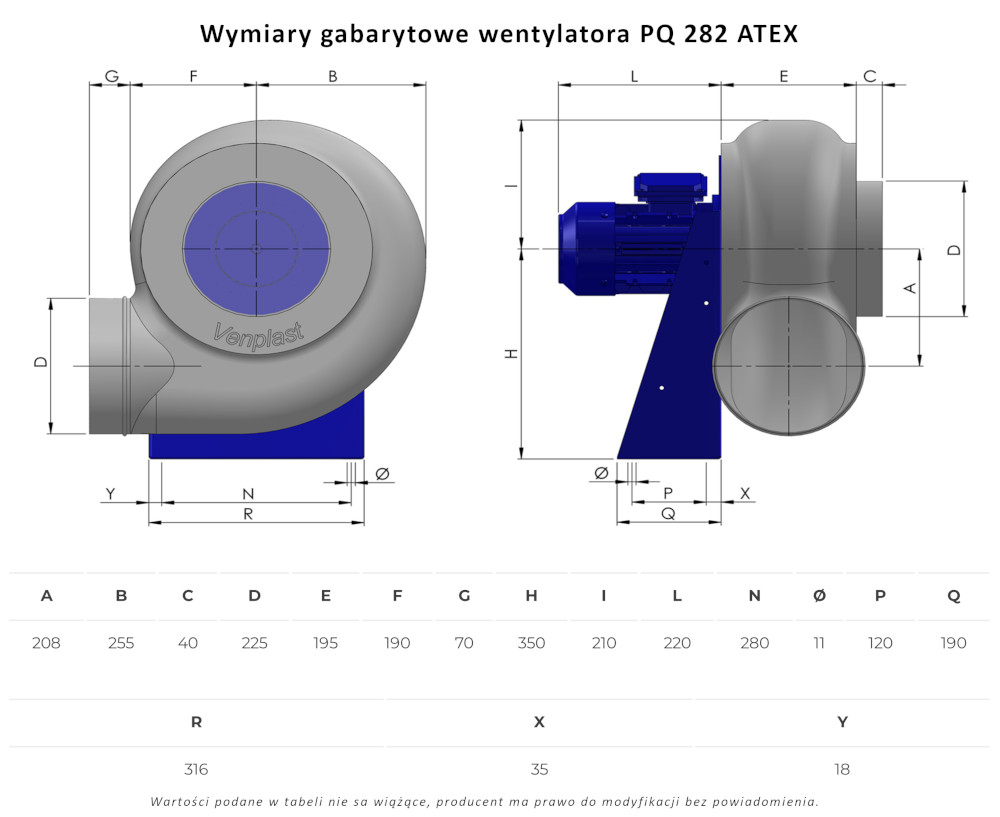 PQ 282 ATEX wentylator chemoodporny przeciwwybuchowy promieniowy