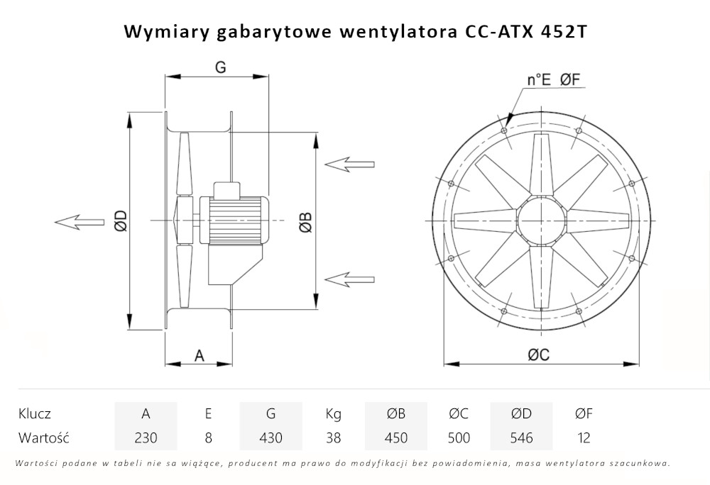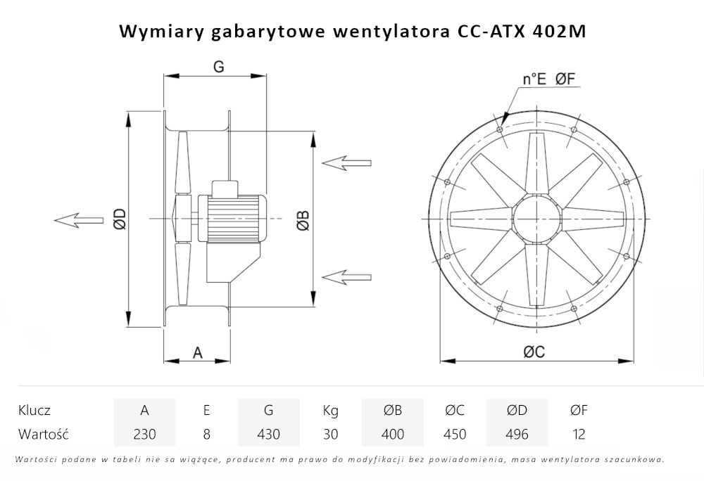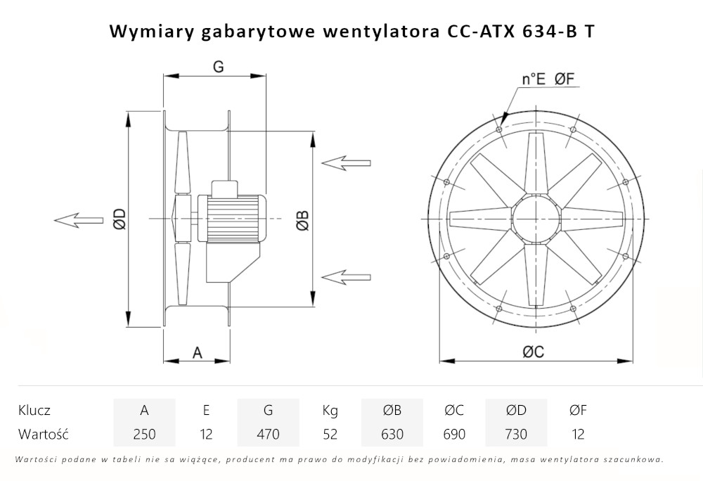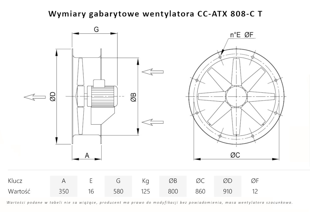 – napęd wentylatora bezpośredni (wirnik osadzony na wale silnika), silnik w wersji B3
