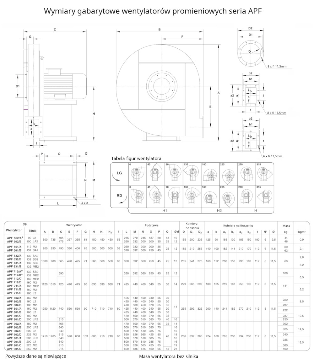 Wentylatory promieniowe wysokociśnieniowe w wersji przeciwwybuchowej serii APF ATEX, przeznaczone są do przetłaczania czystego oraz zapylonego powietrza w strefie zagrożenia wybuchem 1, 2, 21 i 22 wg ATEX (EX). Zaprojektowane oraz wytworzone zgodnie z obowiązującymi warunkami i założeniami Dyrektywy 2014/34/UE . Znajdują zastosowanie w transporcie pneumatycznym, przemyśle cementowym, chemicznym, spożywczym, metalurgicznych oraz hutniczym. Cechą charakterystyczną typoszeregu APF ATEX jest generowanie wysokich ciśnień przy stosunkowo niskim strumieniu objętościowym (wydajności).