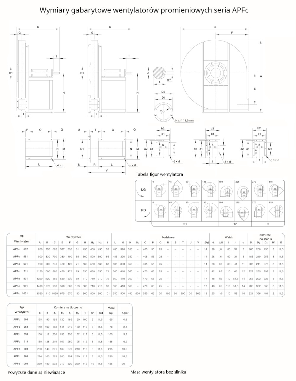 – figury LG, RD oraz kąty wg karty katalogowej
