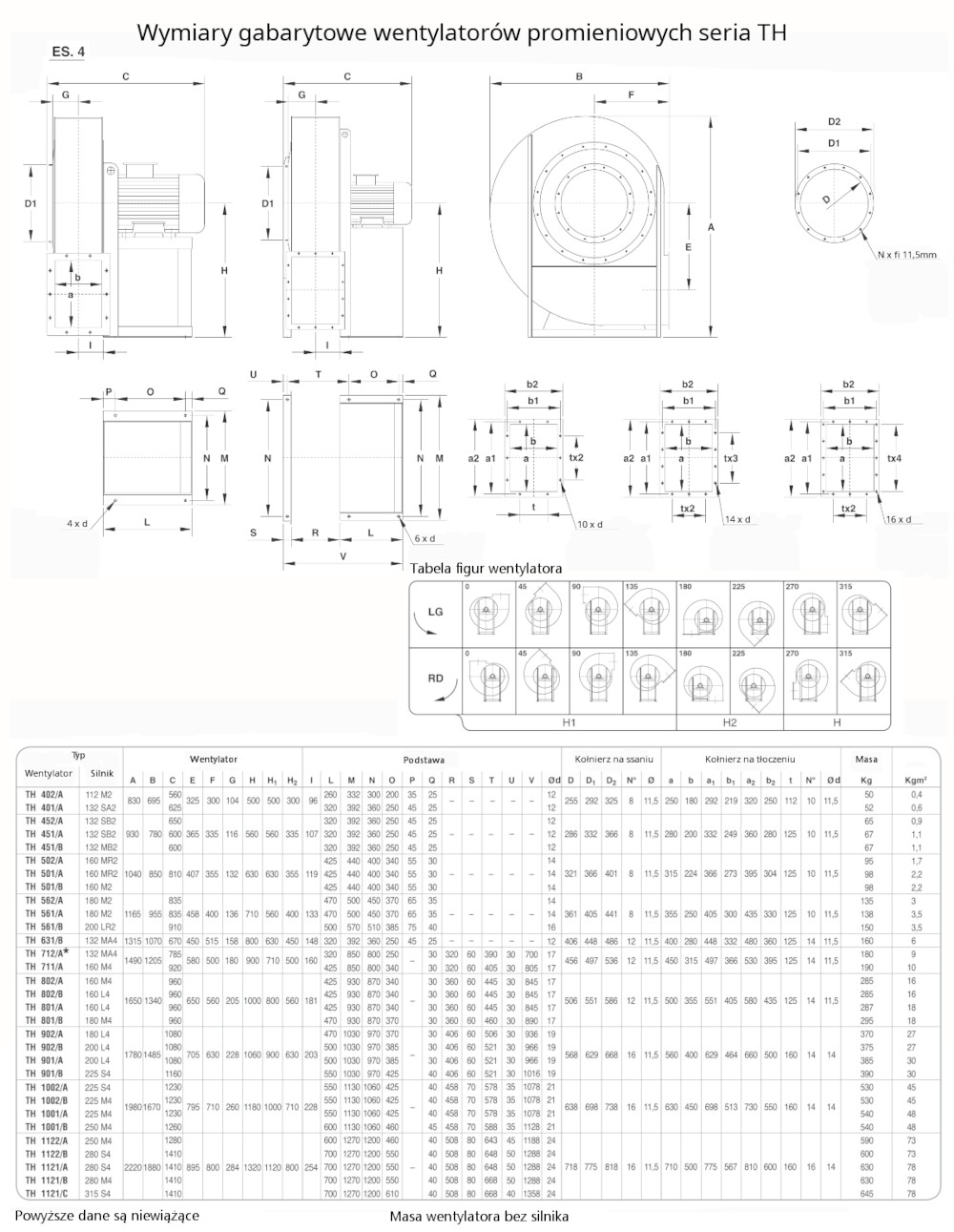 – silnik w wersji B3 dla wykonania mechanicznego ES.4 (montaż łapami silnika do podstawy wentylatora) lub wersji B5 dla wykonania ES.5 (montaż kołnierzem silnika do obudowy wentylatora).