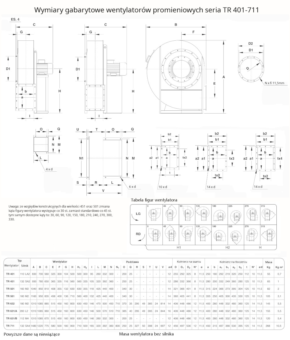 – silnik w wersji B3 dla wykonania mechanicznego ES.4 (montaż łapami silnika do podstawy wentylatora) lub wersji B5 dla wykonania ES.5 (montaż kołnierzem silnika do obudowy wentylatora).