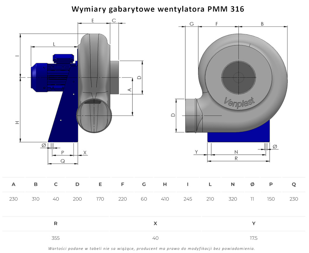 PMM 316 wentylator chemoodporny promieniowy