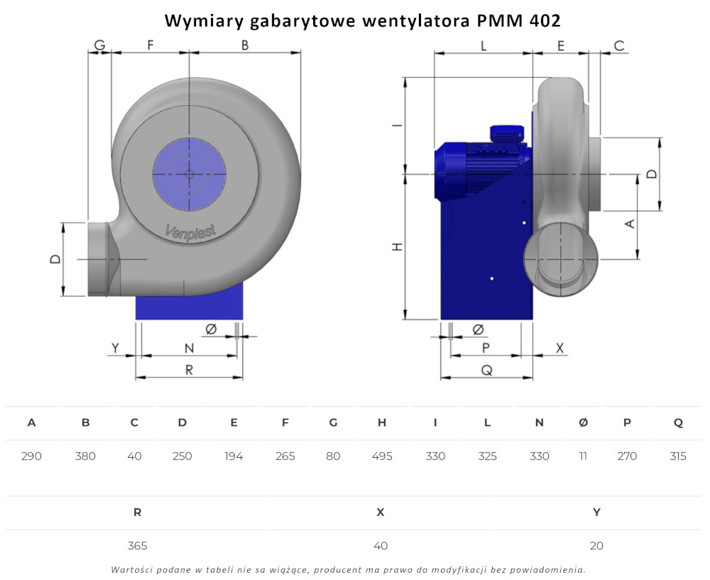 PMM 402 wentylator chemoodporny promieniowy