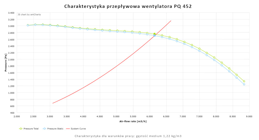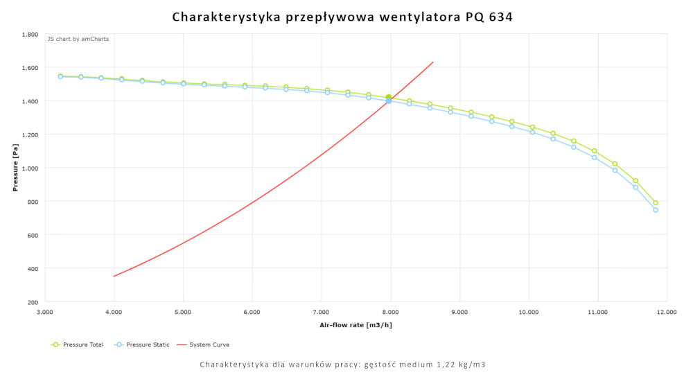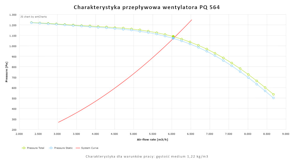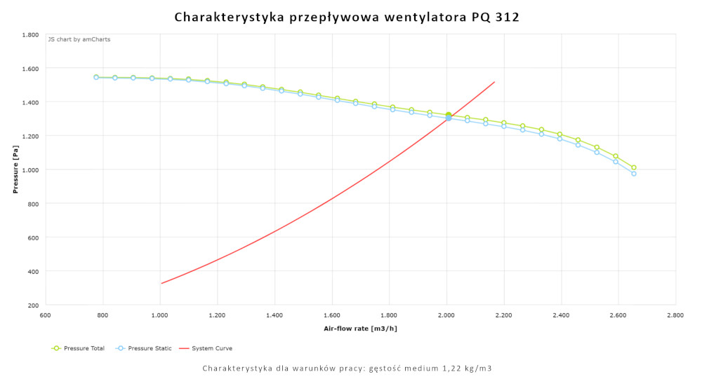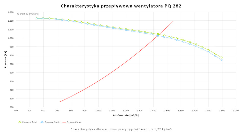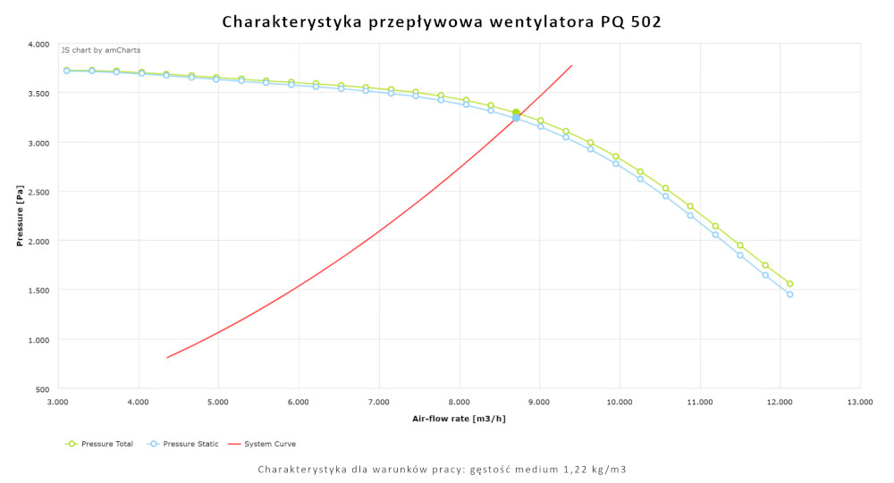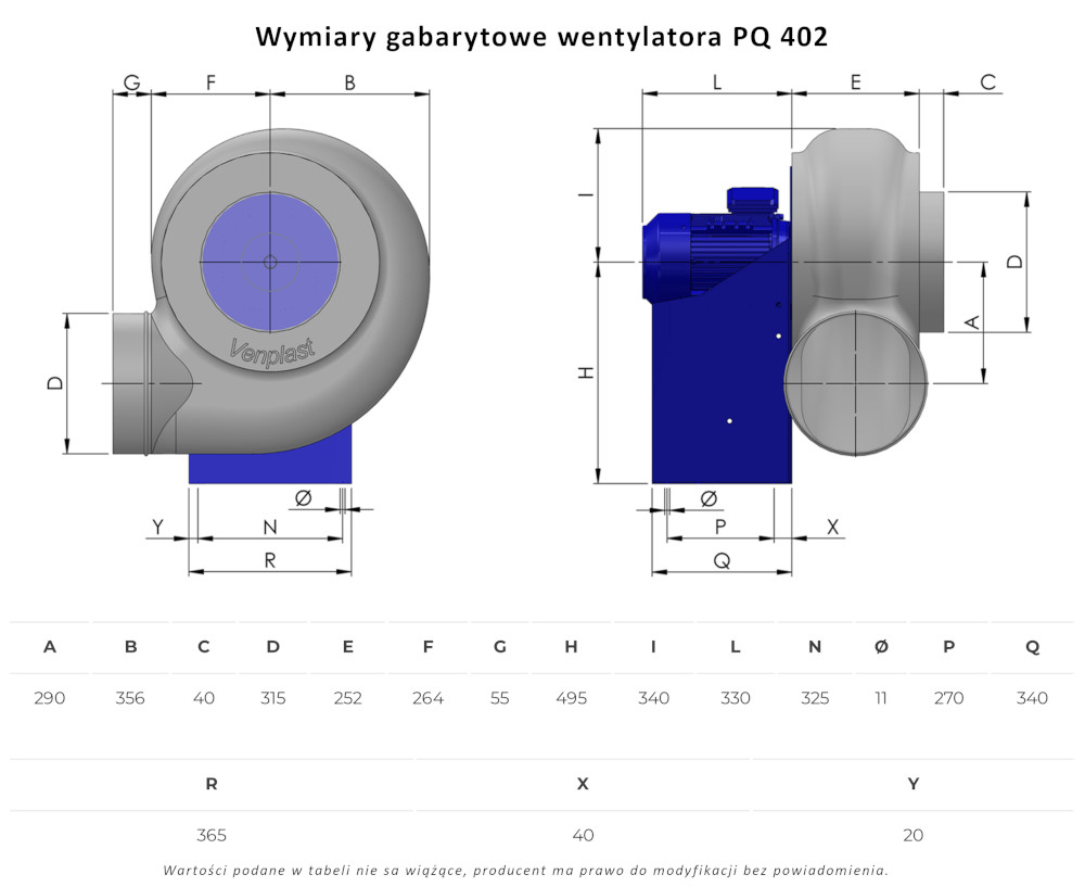 – wirnik promieniowy z łopatami zagiętymi do tyłu wykonany z polipropylenu (PP)