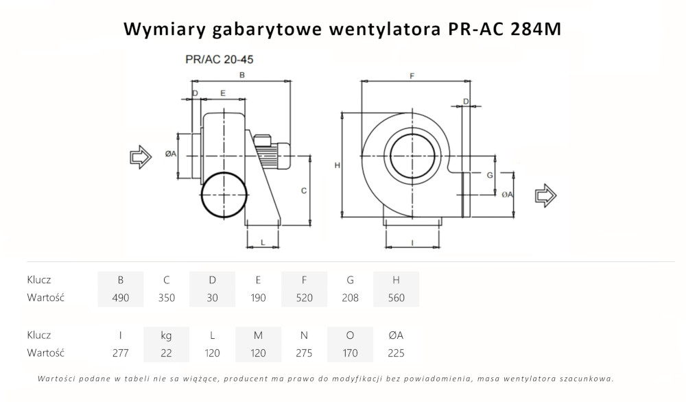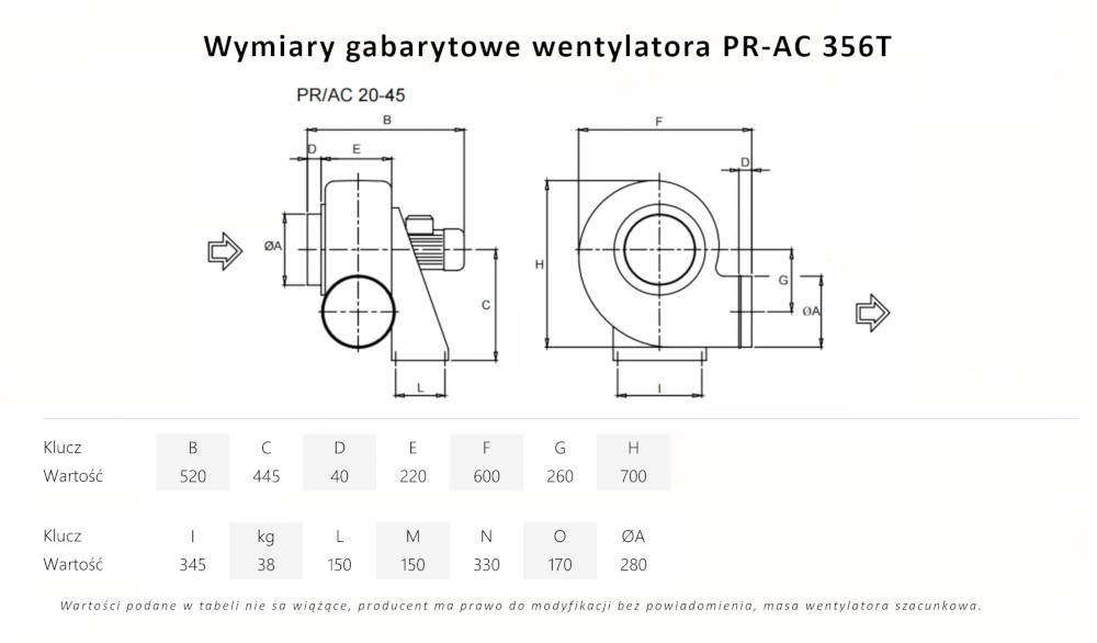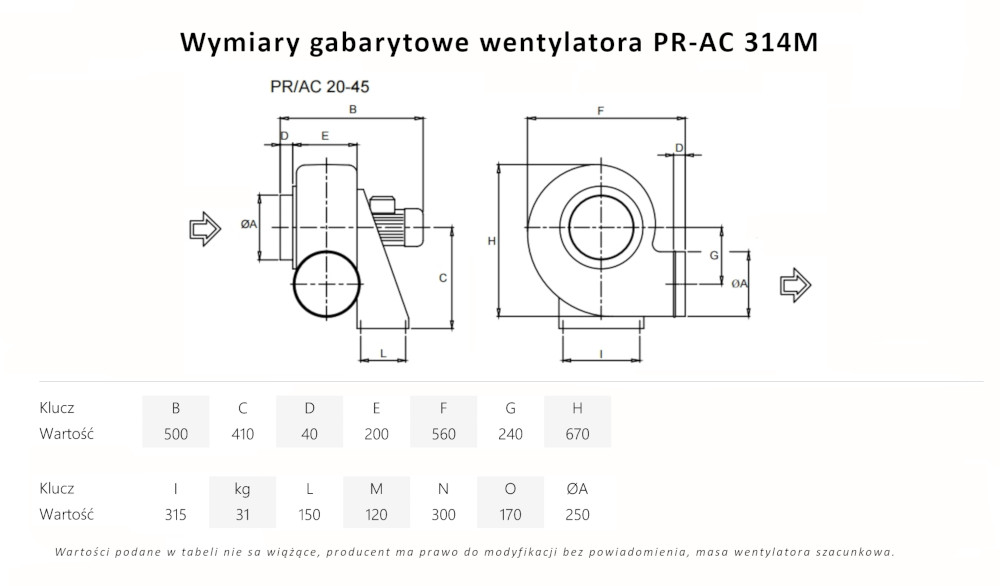 – obudowa wentylatora wykonana z polietylenu (PE)