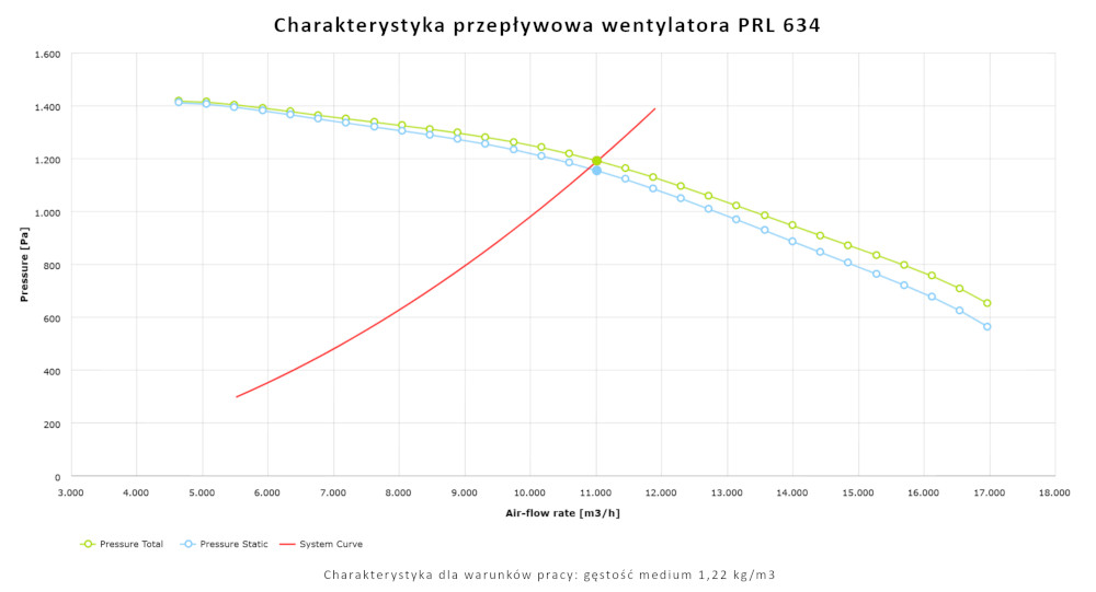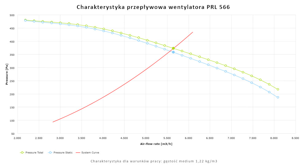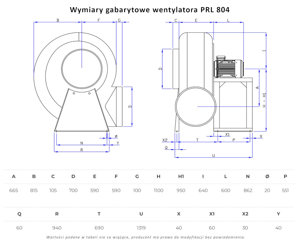 – wirnik promieniowy z łopatami zagiętymi do tyłu wykonany z polipropylenu (PP)