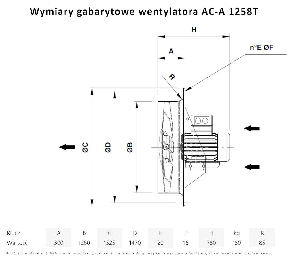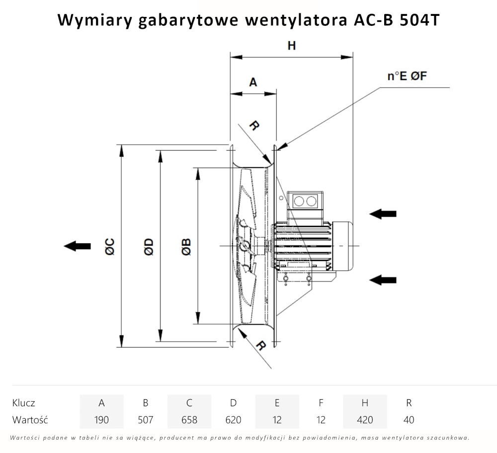 – kierunek przepływu powietrza od wirnika do silnika