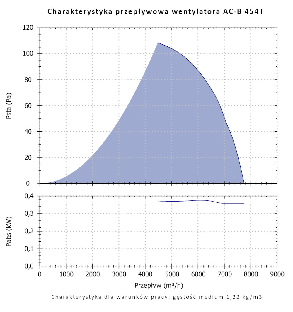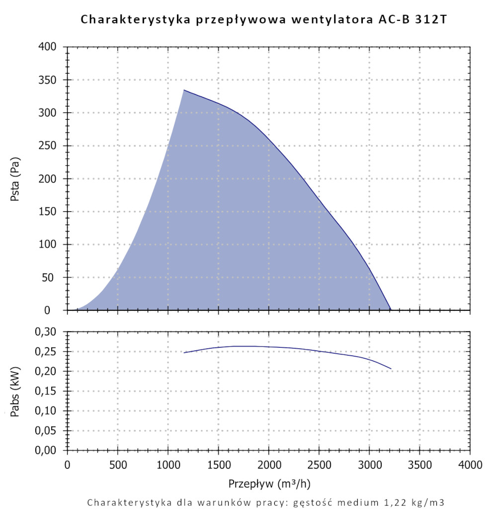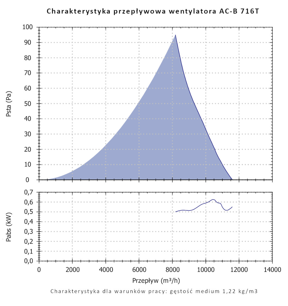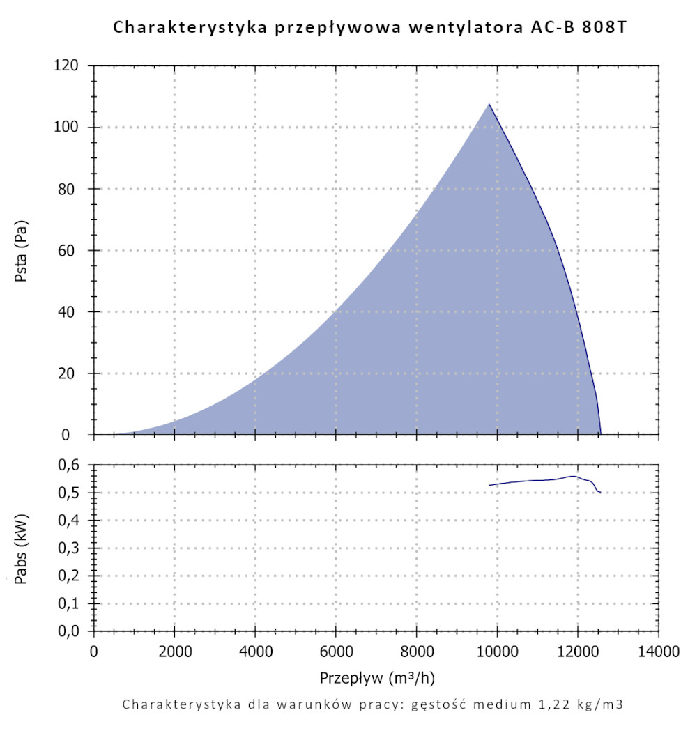 Cechą charakterystyczną wentylatorów serii AC-B jest wysoka sprawność oraz niski pobór energii oferując możliwość przetłaczania znacznych ilości powietrza o niewielkich i średnich oporach przepływu. Wentylatory przystosowane są do przetłaczania czystego powietrza o temperaturze nie większej niż +50°C.