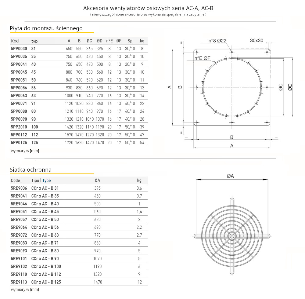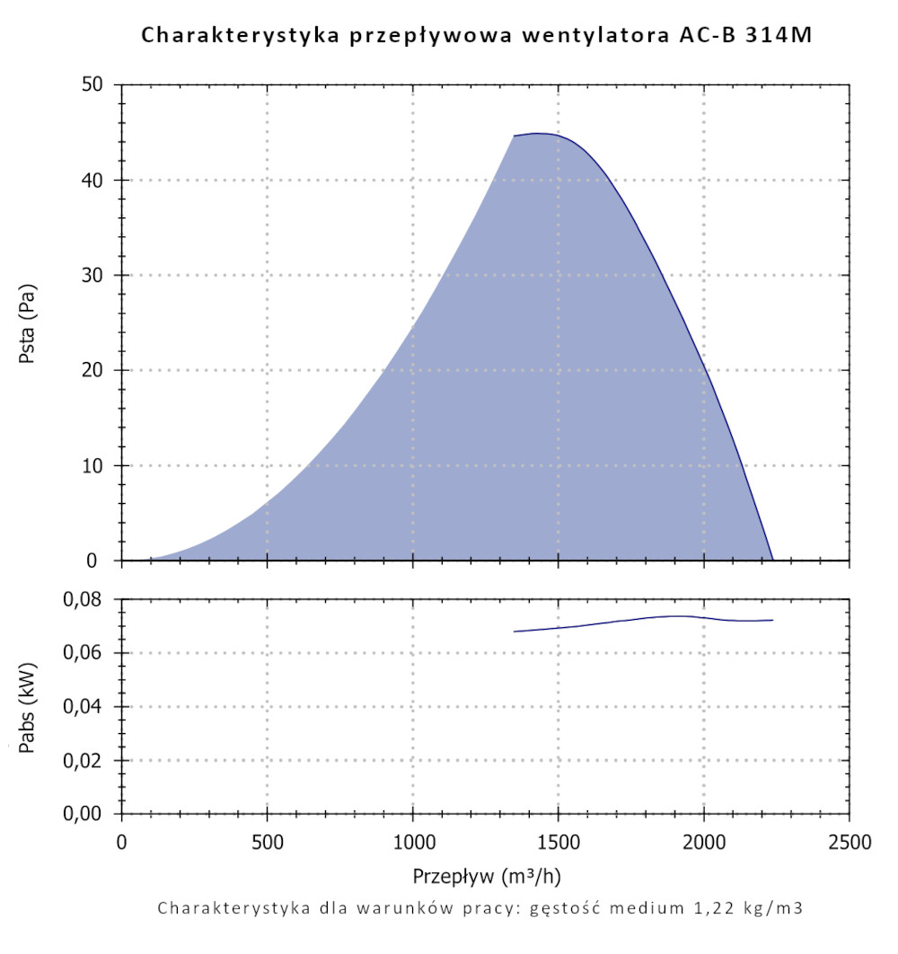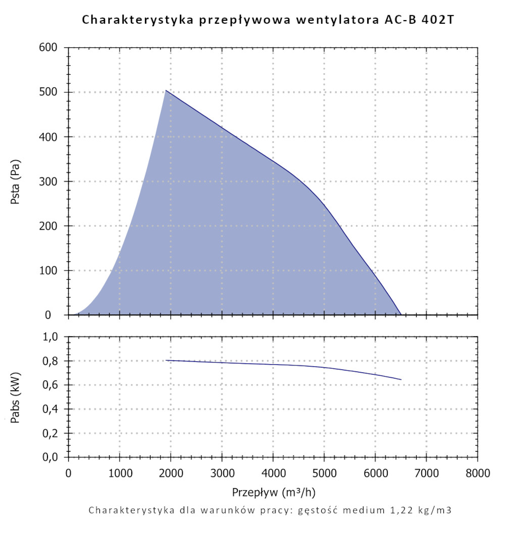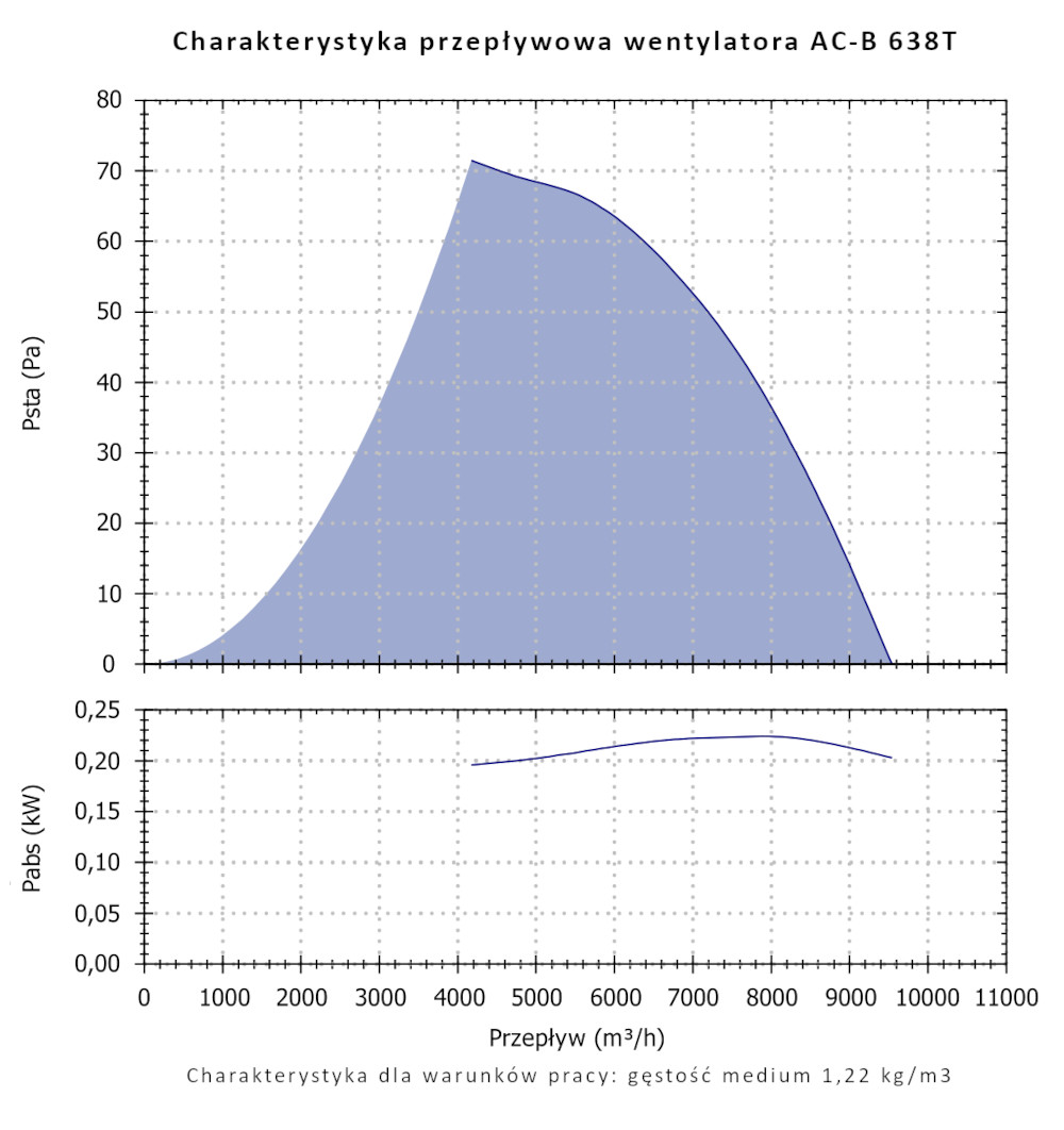 Cechą charakterystyczną wentylatorów serii AC-B jest wysoka sprawność oraz niski pobór energii oferując możliwość przetłaczania znacznych ilości powietrza o niewielkich i średnich oporach przepływu. Wentylatory przystosowane są do przetłaczania czystego powietrza o temperaturze nie większej niż +50°C.