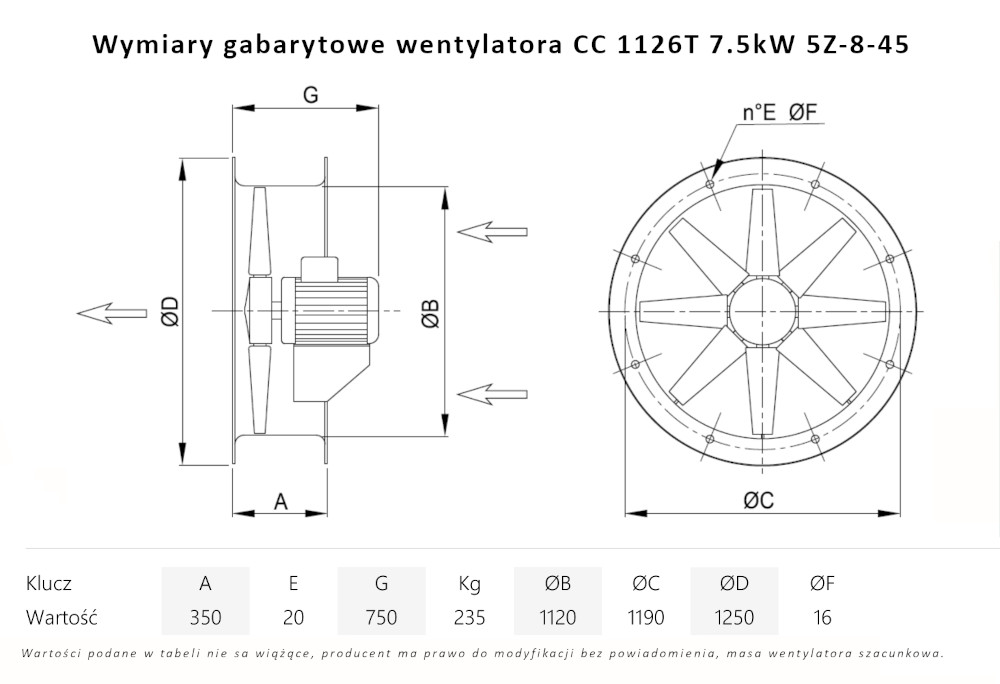 CC 1126T 7.5kW 5Z-8-45 wentylator kanałowy