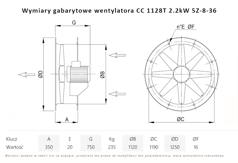 CC 1128T 2.2kW 5Z-8-36 wentylator kanałowy