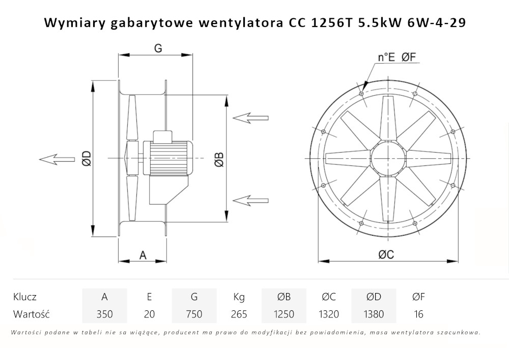 CC 1256T 5.5kW 6W-4-29 wentylator kanałowy