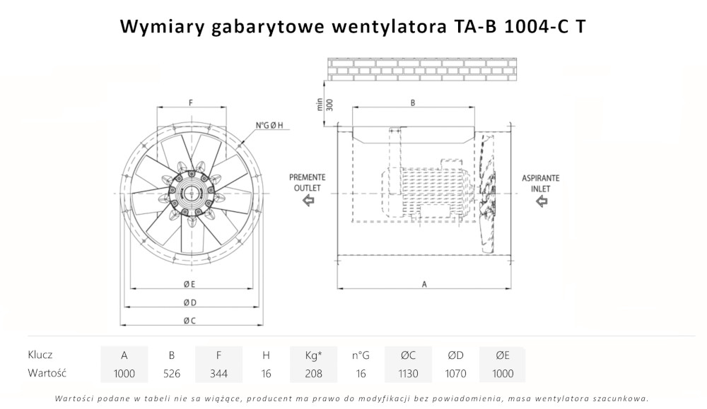 TA-B 1004-C T wentylator kanałowy wysokotemperaturowy
