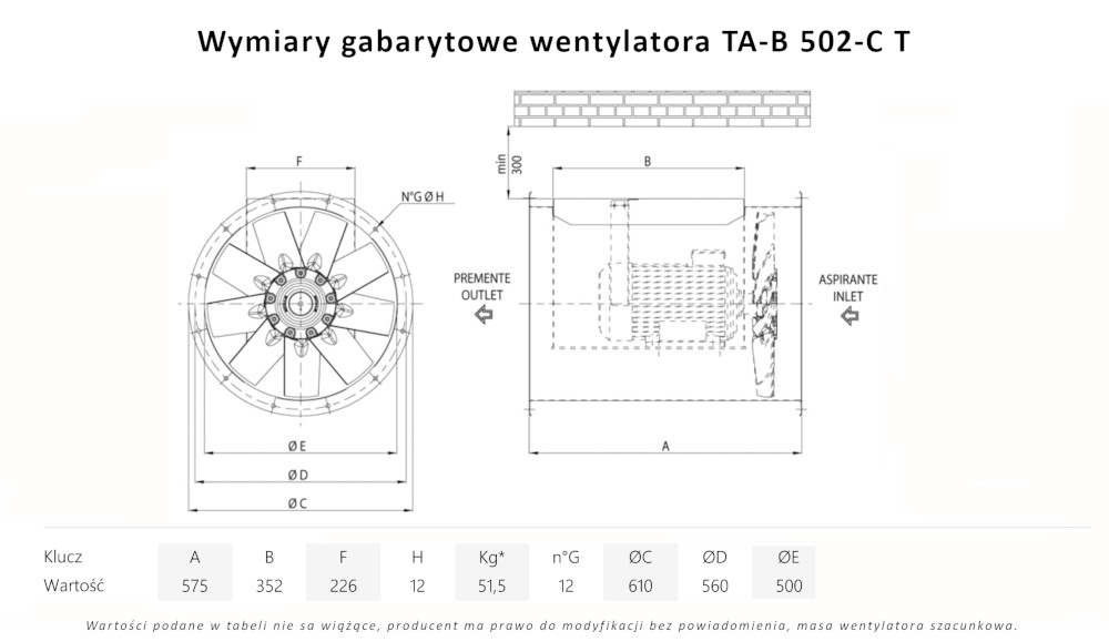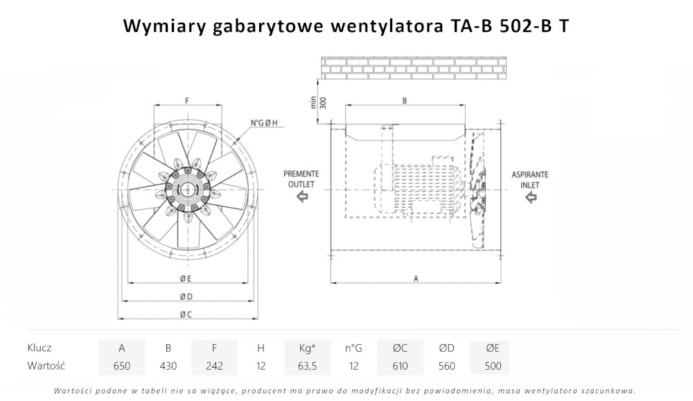 TA-B 502-C T wentylator kanałowy wysokotemperaturowy