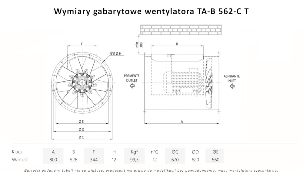 TA-B 562-C T wentylator kanałowy wysokotemperaturowy