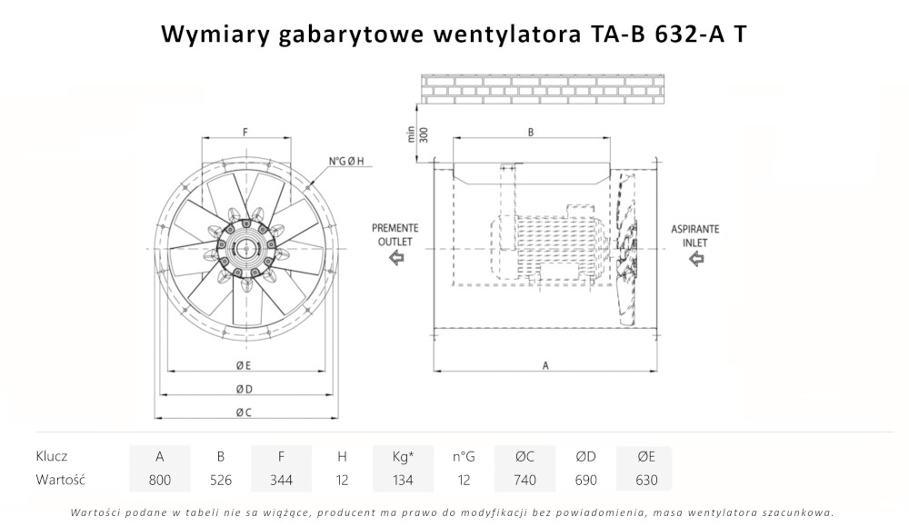 TA-B 632-B T wentylator kanałowy wysokotemperaturowy
