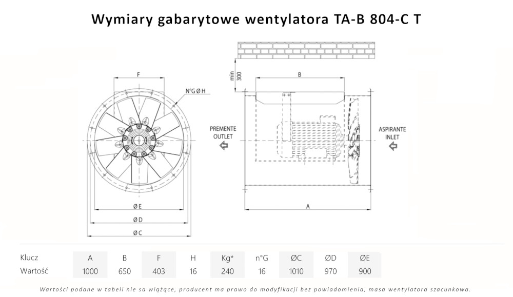 TA-B 804-B T wentylator kanałowy wysokotemperaturowy
