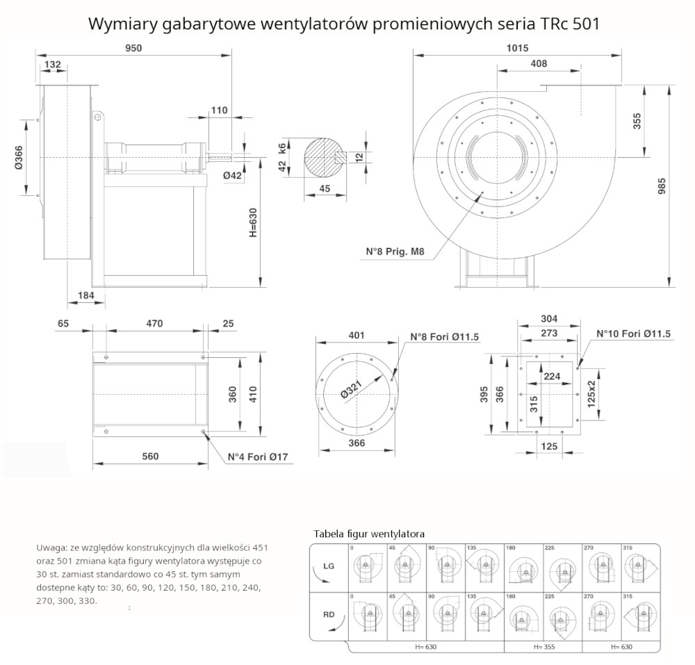 – napęd wentylatora pośredni poprzez napęd pasowy lub bezpośredni poprzez sprzęgło elastyczne, wirnik osadzony na łożyskowanym wale pośrednim