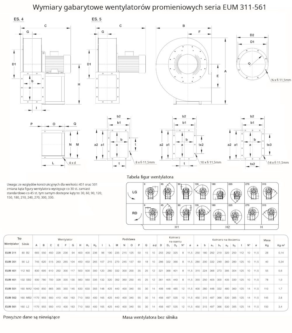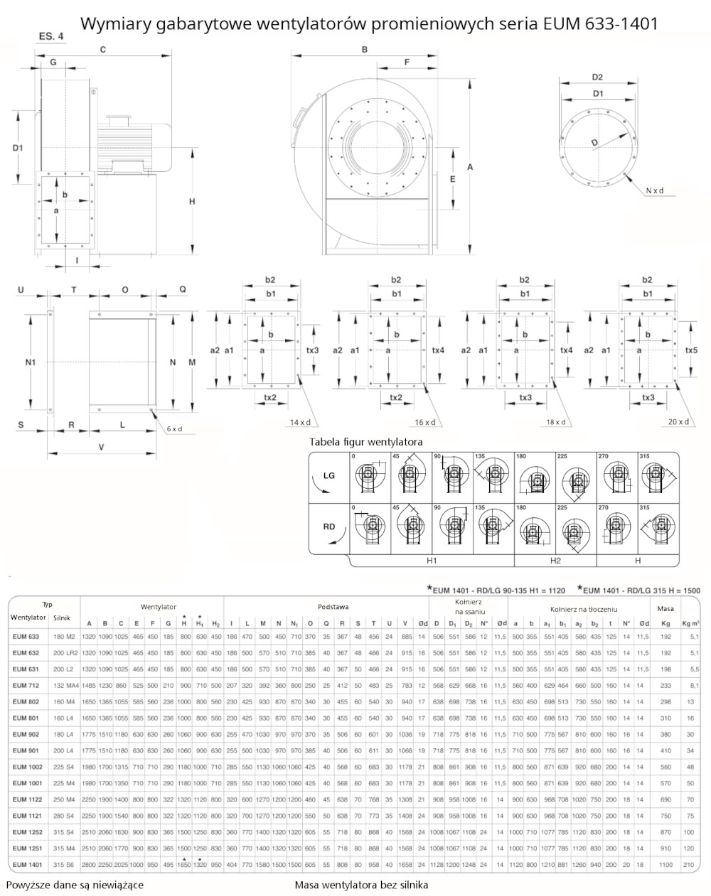 – silnik w wersji B3 dla wykonania mechanicznego ES.4 (montaż łapami silnika do podstawy wentylatora) lub wersji B5 dla wykonania ES.5 (montaż kołnierzem silnika do obudowy wentylatora).