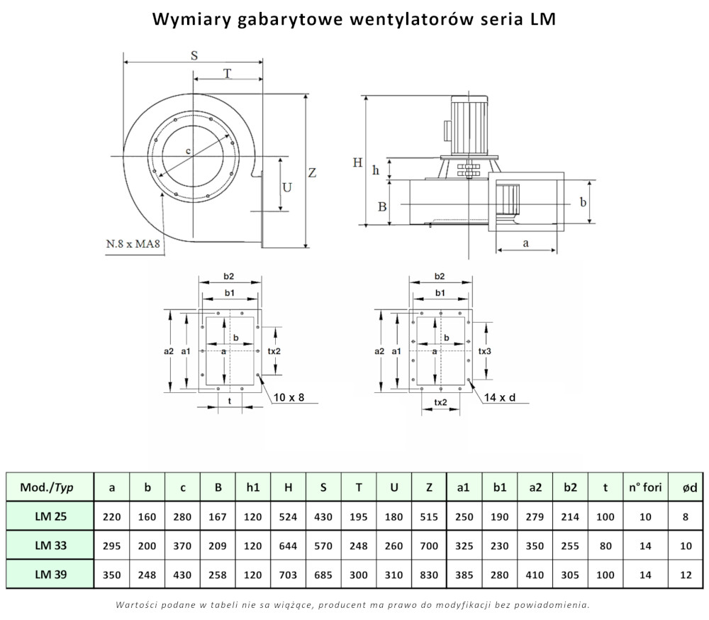 Promieniowe wysokotemperaturowe wentylatory serii LM to urządzenia niskociśnieniowe przystosowane do przetłaczania spalin lub czystego i lekko zapylonego powietrza o temperaturze nie wyższej niż +300 °C. Z uwagi na właściwości wentylatorów serii LM stosowane są one w piekarniach jako wyciągi piekarnicze, okapach do odprowadzania pary i spalin, przemyśle spożywczym, instalacjach cyrkulacji gorącego powietrza oraz wentylacji przemysłowej.