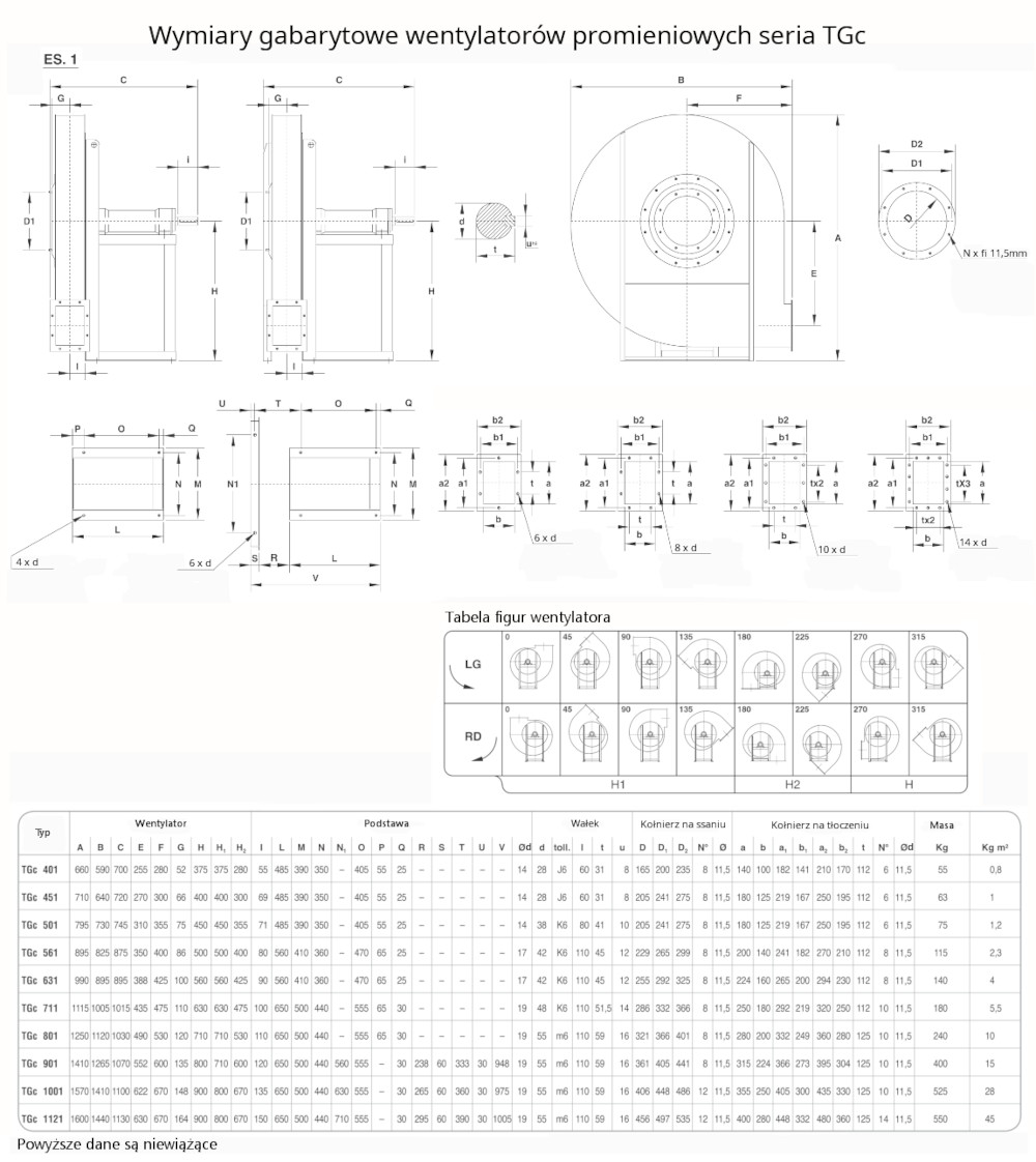– figury LG, RD oraz kąty wg karty katalogowej