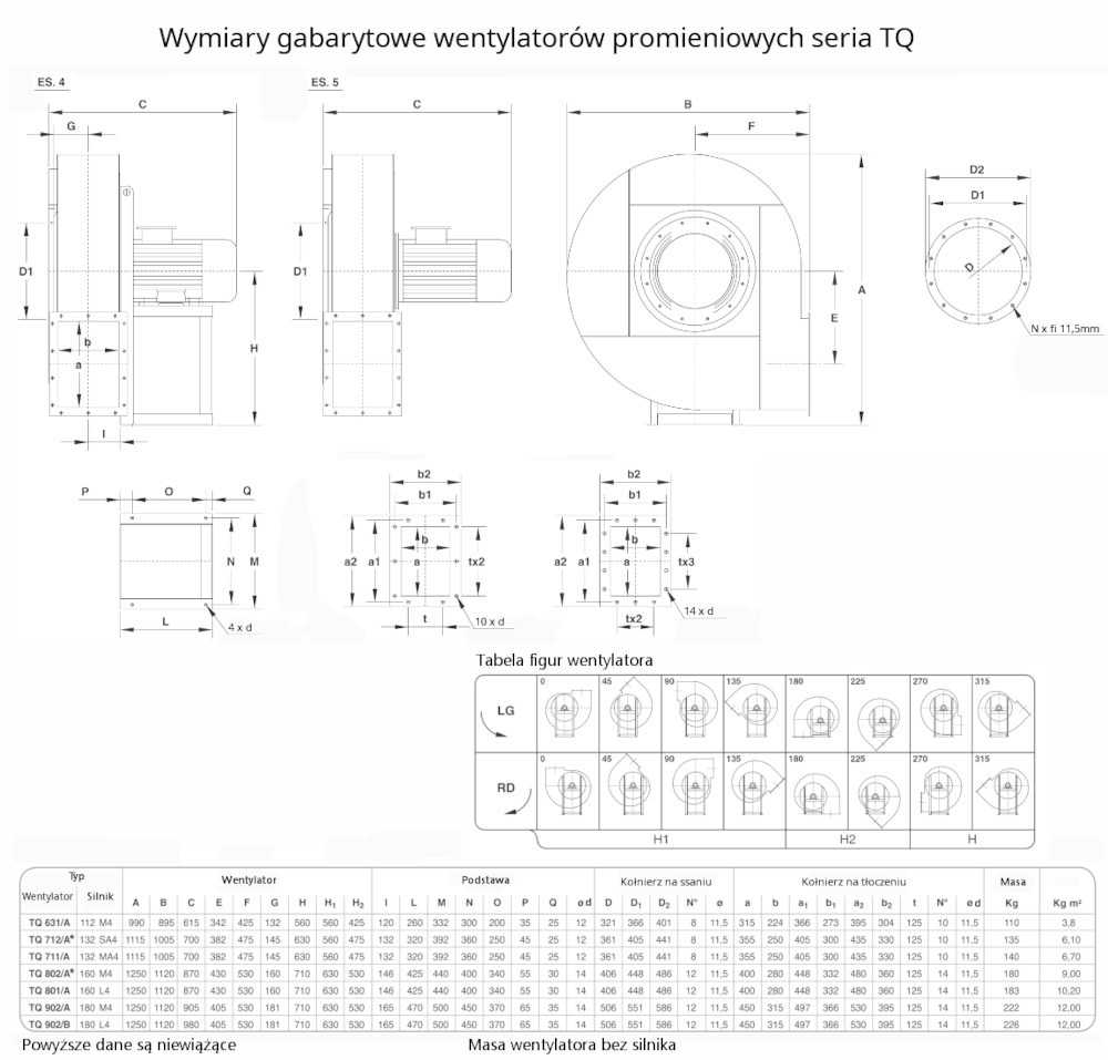 – silnik w wersji B3 dla wykonania mechanicznego ES.4 (montaż łapami silnika do podstawy wentylatora) lub wersji B5 dla wykonania ES.5 (montaż kołnierzem silnika do obudowy wentylatora).
